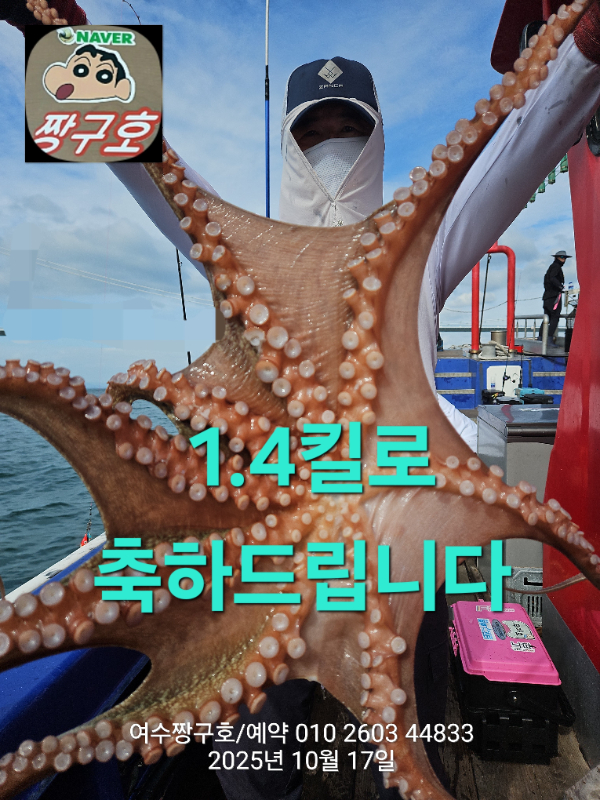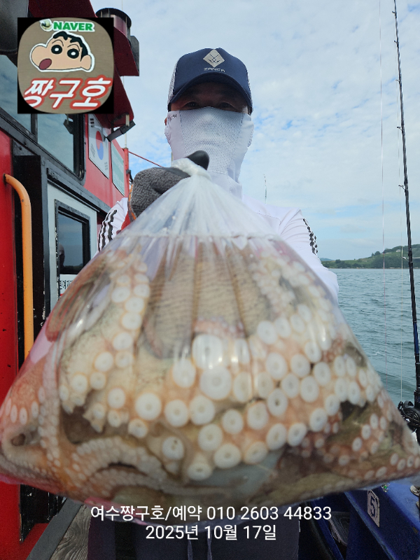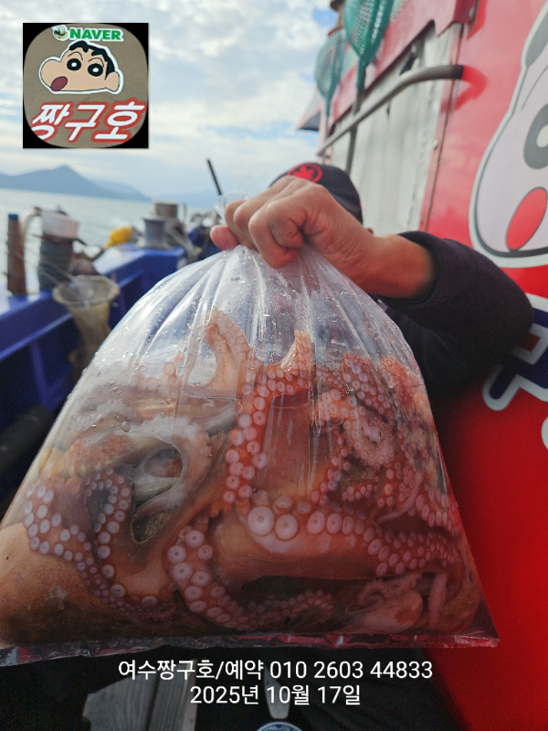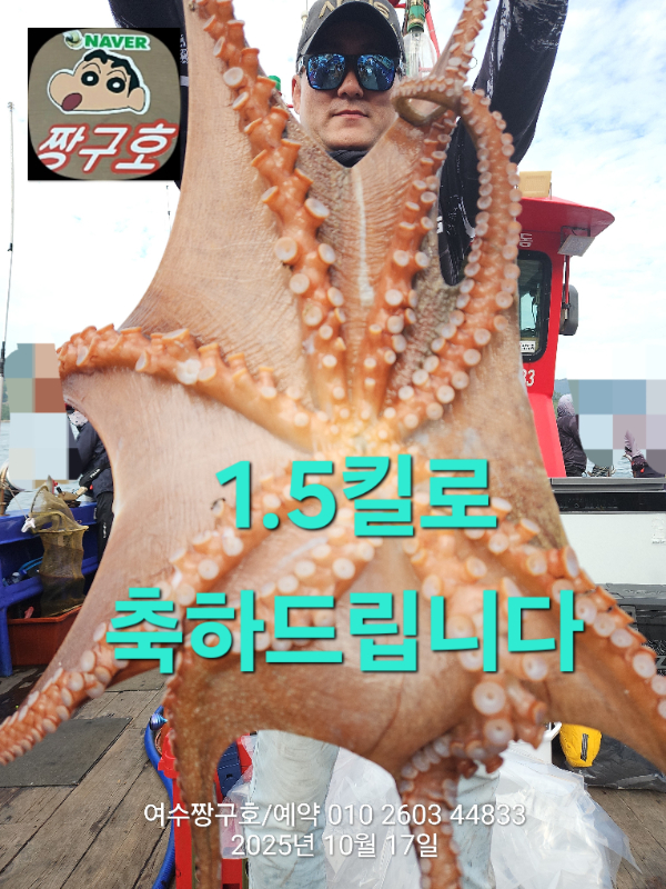 | 제목 : 여수 짱구호 17일(금)왕문어 1.5k.1.4k.1.3k /왕갑 대박 조황 | ||