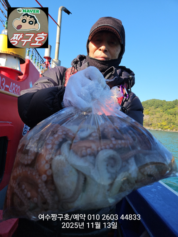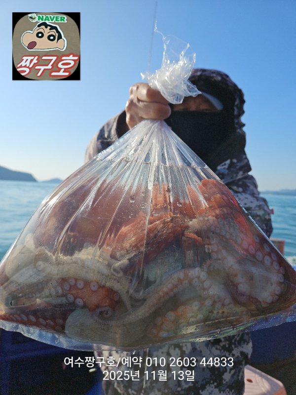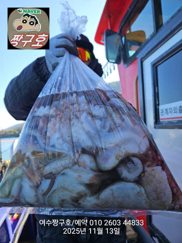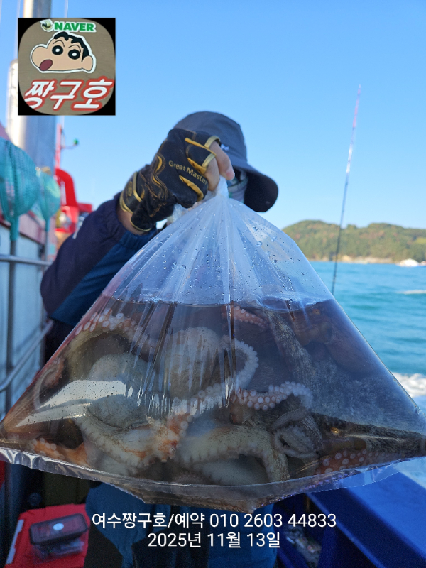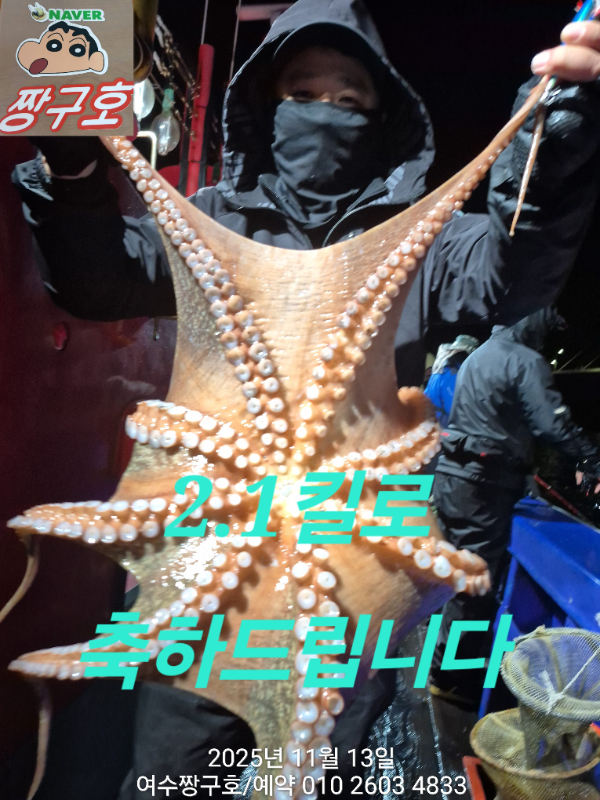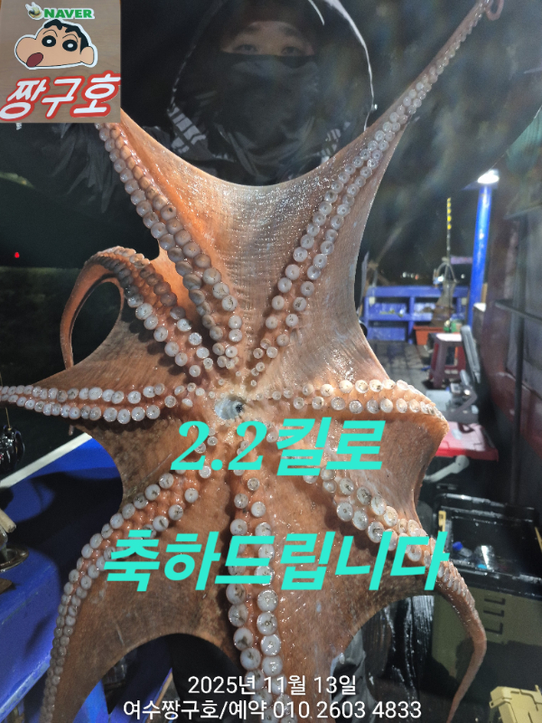 | 제목 : 여수 짱구호 11월13일(목)왕문어 2.2k 2.1k 1.8k 1.2k 1.1k 1.0k 대박 조황(6수) | ||