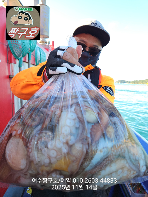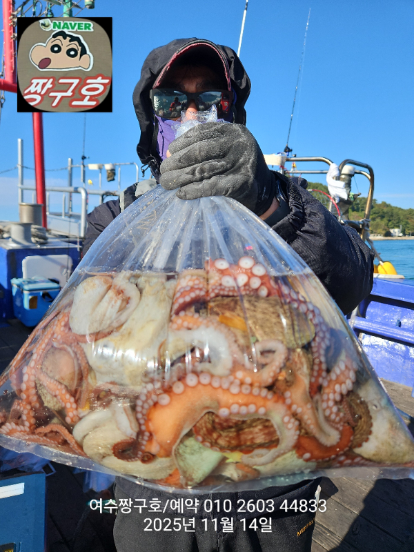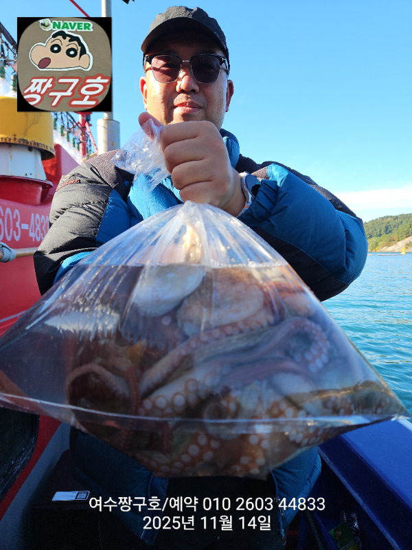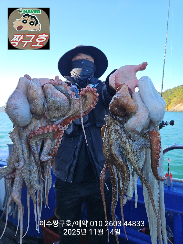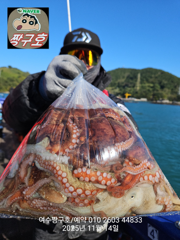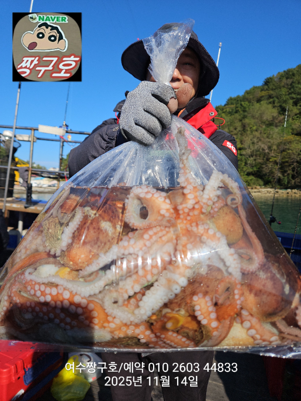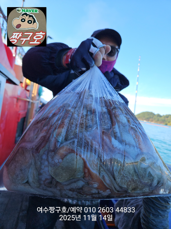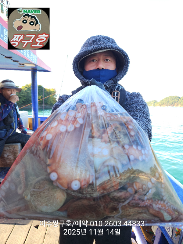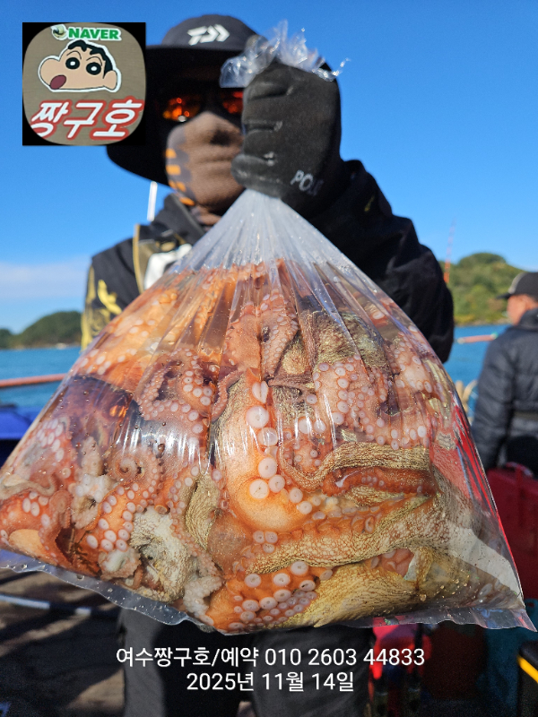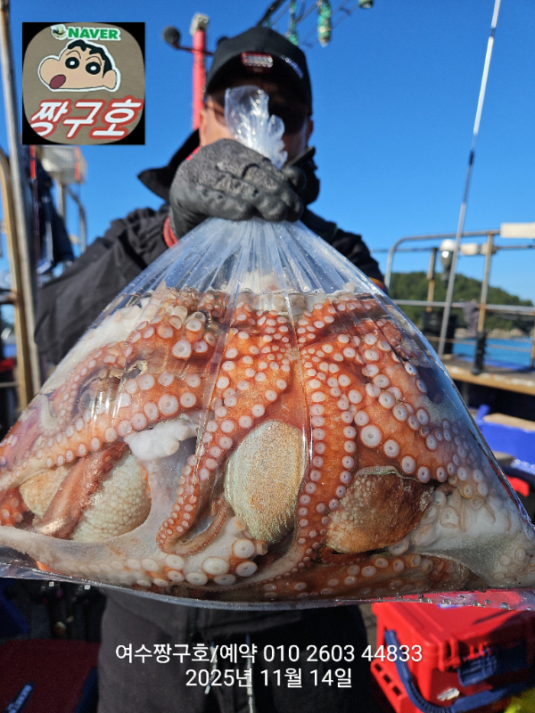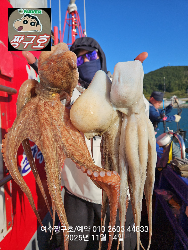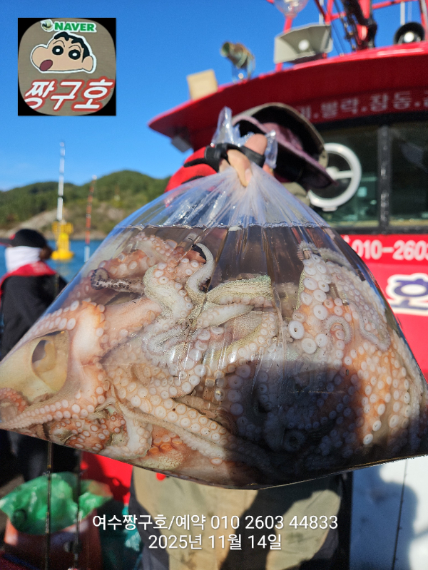 | 제목 : 여수 짱구호 11월14일(금)왕문어 1.7k 1.7k 1.47k 1.3k 1.2k 1.2k 1.1k 1.1k 1.0k 1.0k 1.0k 초대박 조황 (11수) | ||