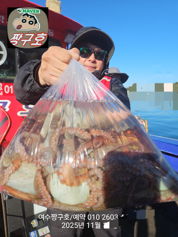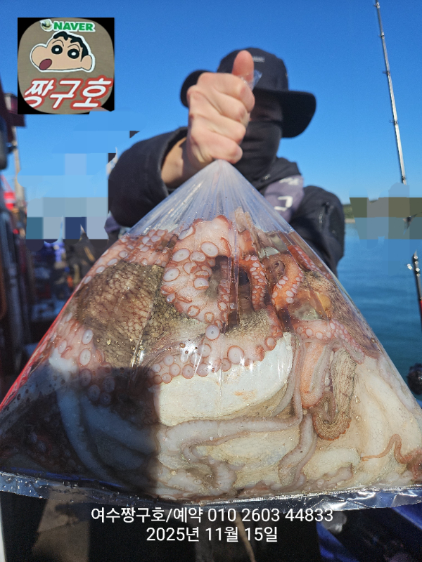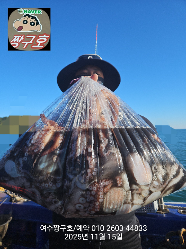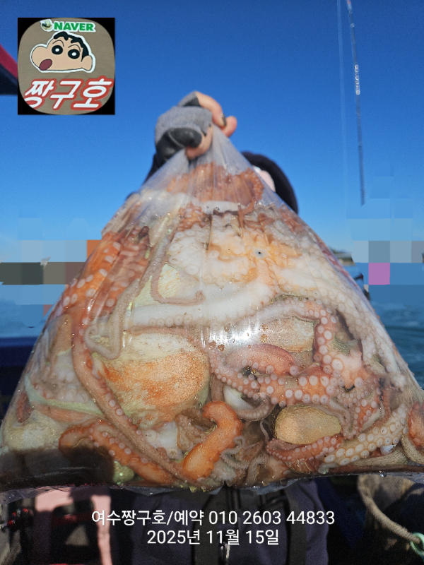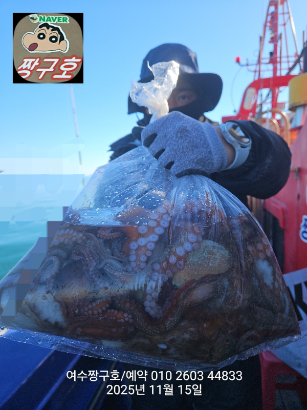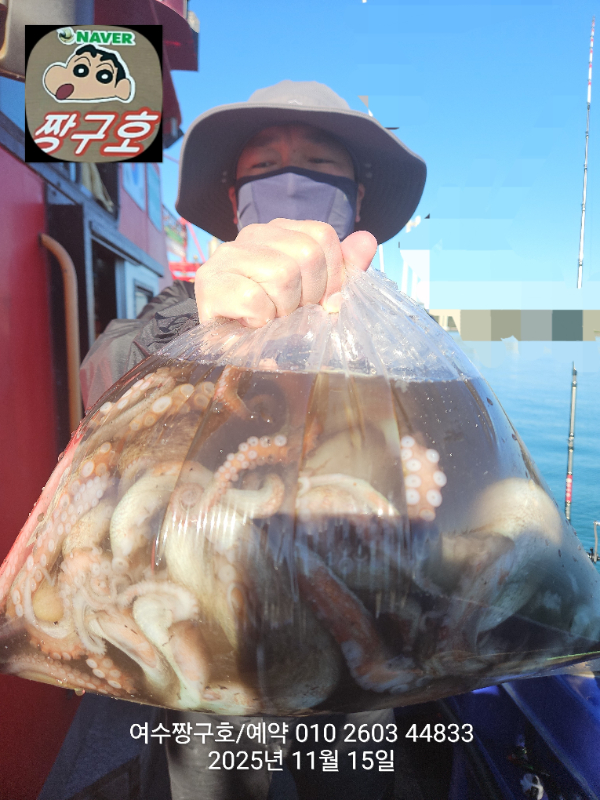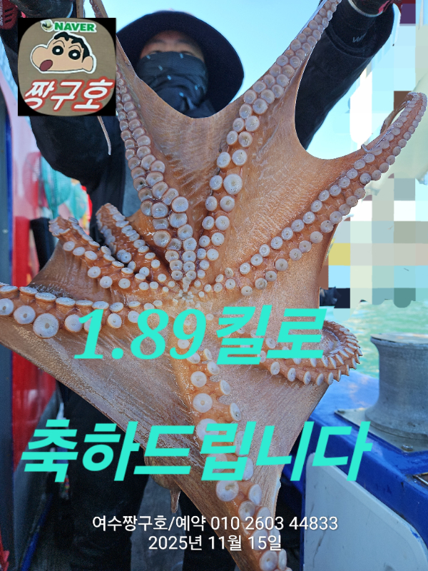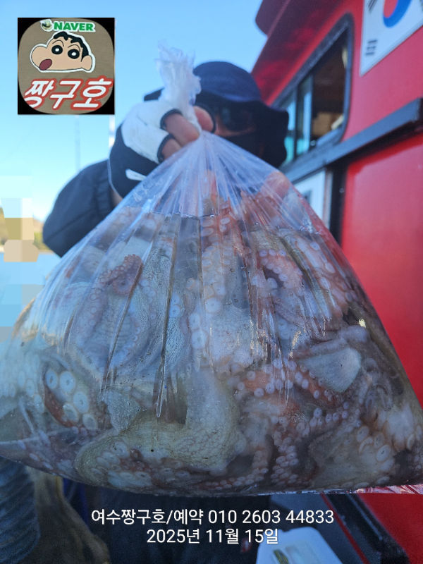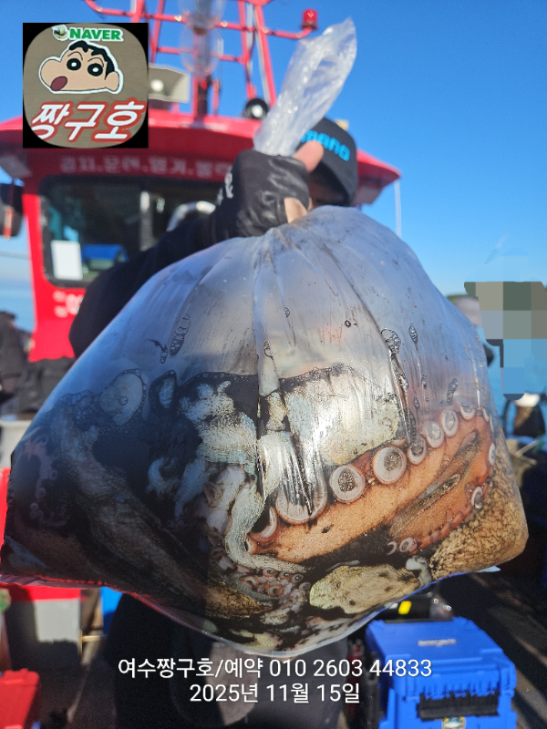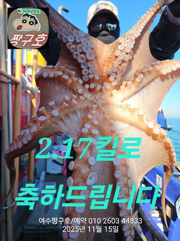 | 제목 : 여수 짱구호 11월15일(토)왕문어 2.3k 2.17k 1.89k 1.8k 1.8k 1.5k 1.5k 1.3k 1.2k 1.2k 1.0k 1.0k 초대박 조황 (12수) | ||