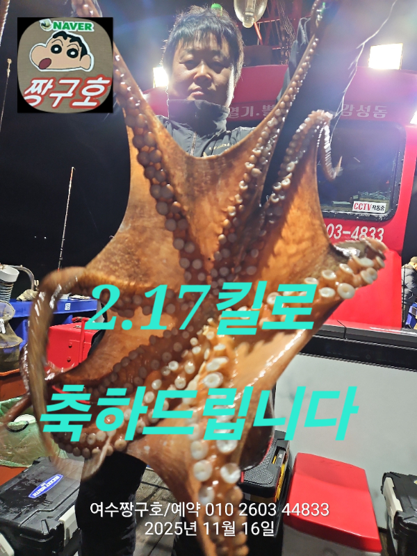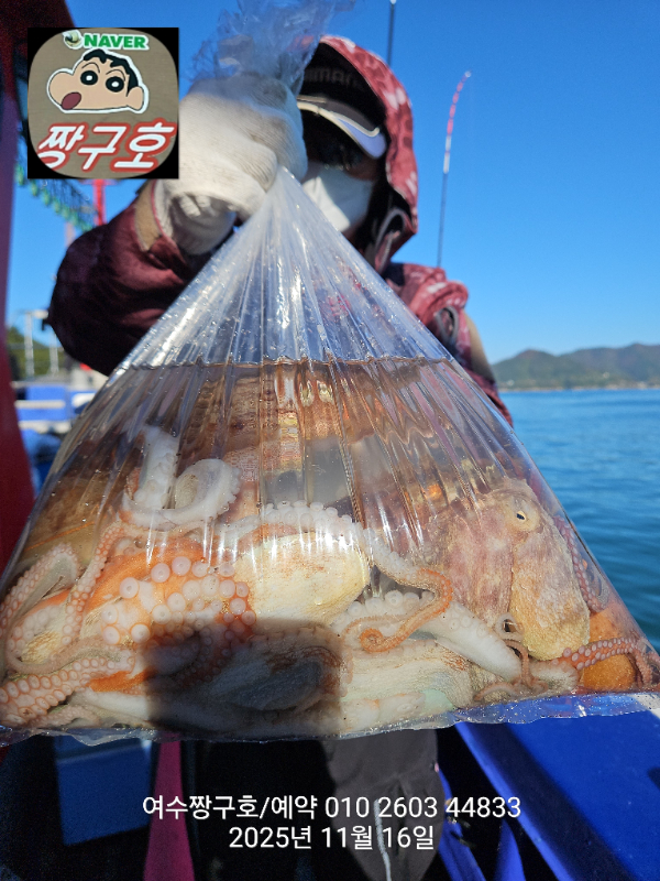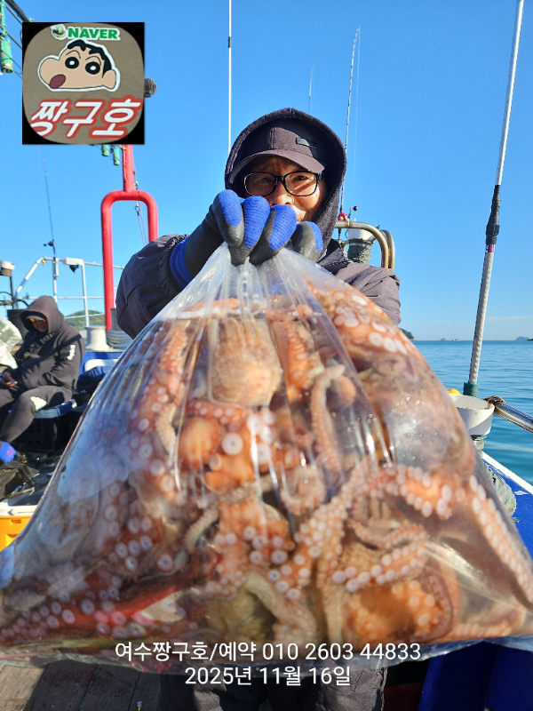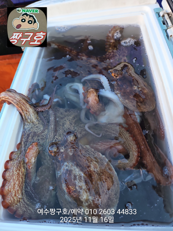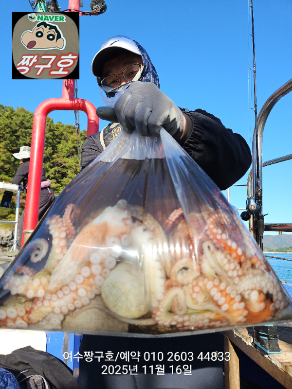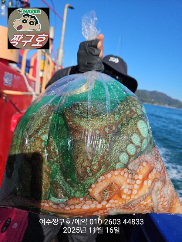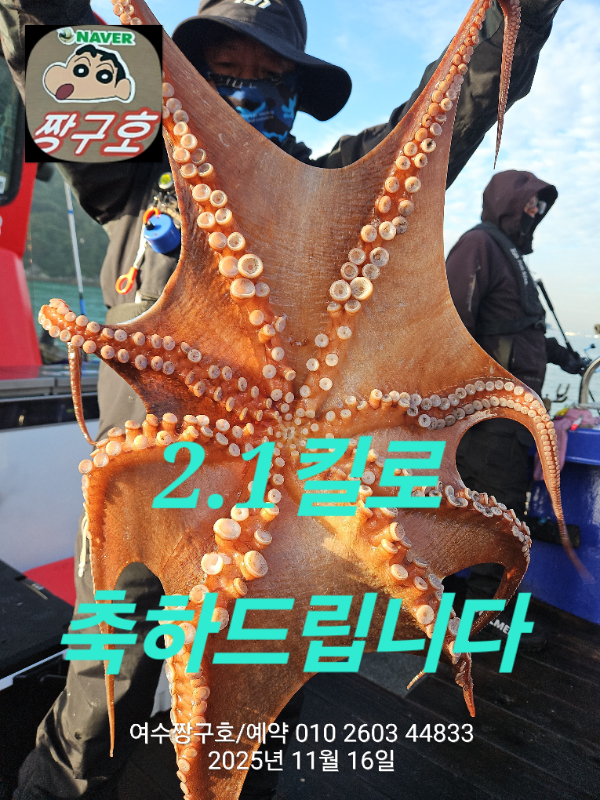 | 제목 : 여수 짱구호 11월16일(일)왕문어 2.17k 2.1k 1.6k 1.58k 1.4k 1.4k 1.3k 1.2k 1.18k 1.0k 1.0k 초대박 조황 (11수) | ||