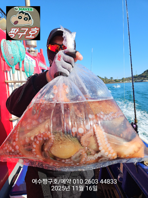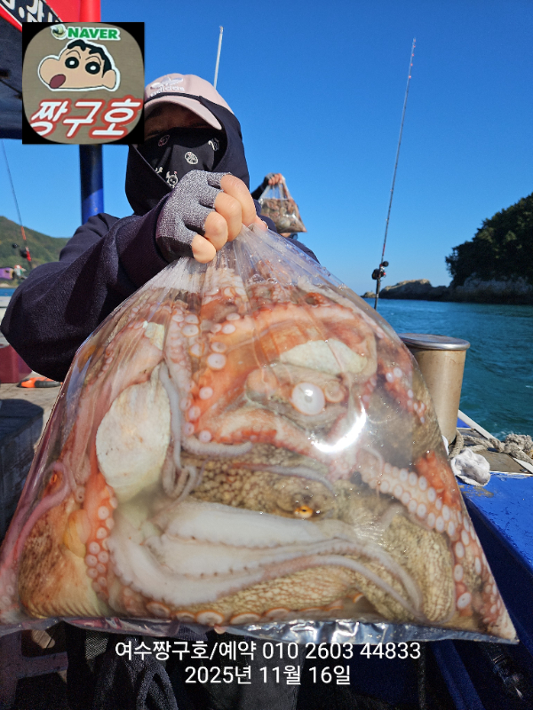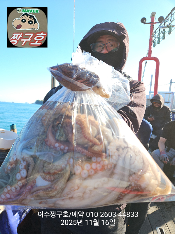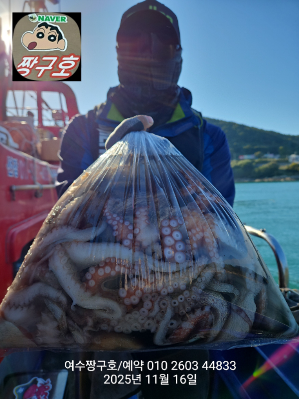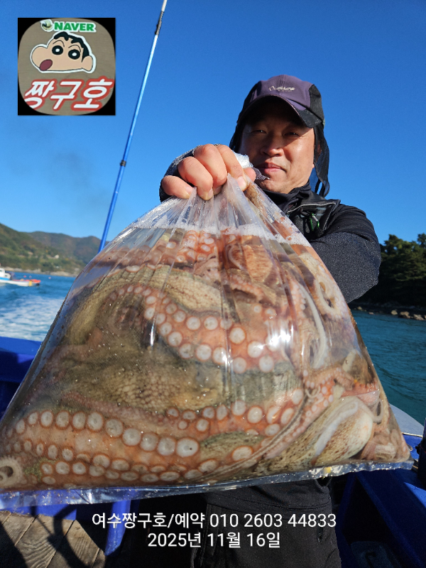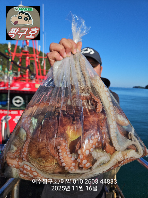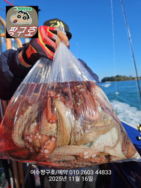 | 제목 : 여수 짱구호 11월16일(일)왕문어 2.17k 2.1k 1.6k 1.58k 1.4k 1.4k 1.3k 1.2k 1.18k 1.0k 1.0k 초대박 조황 (11수) | ||