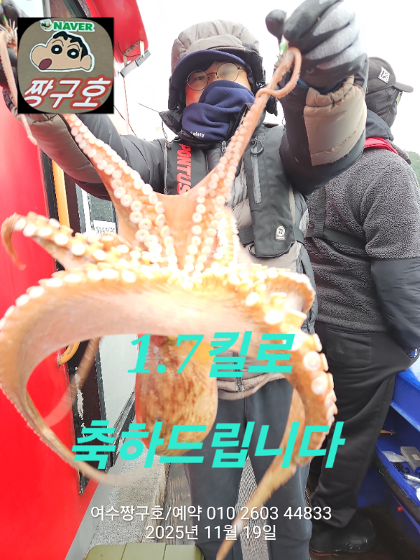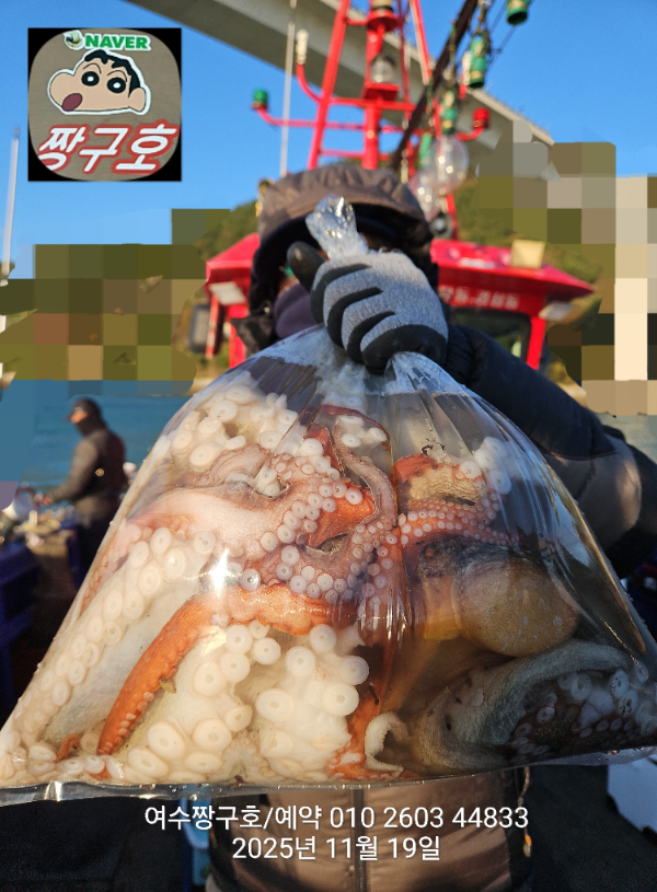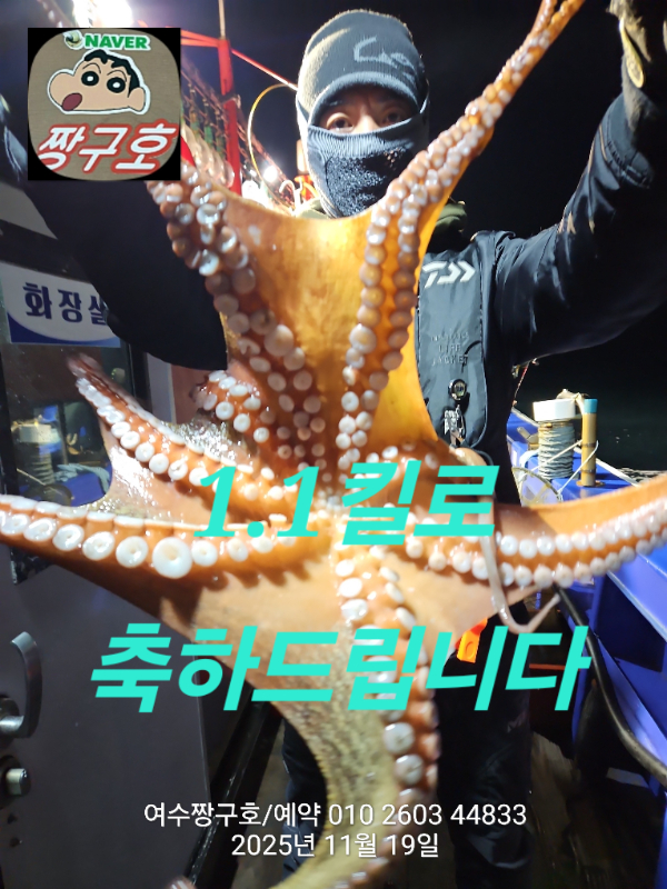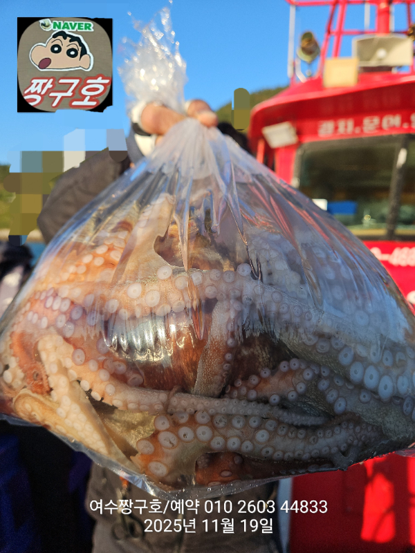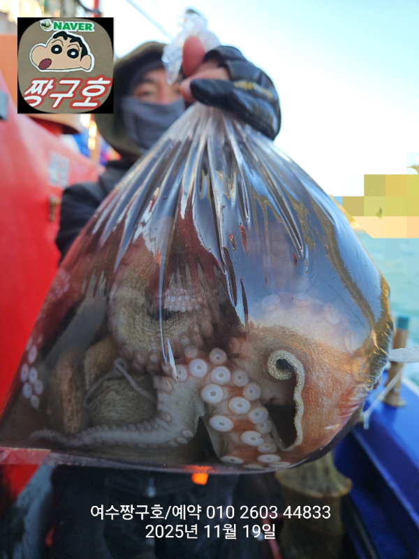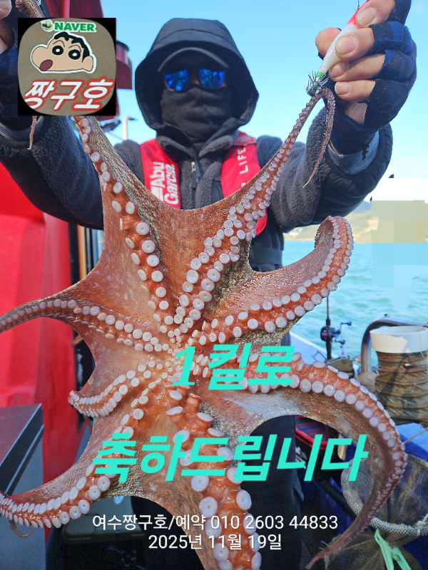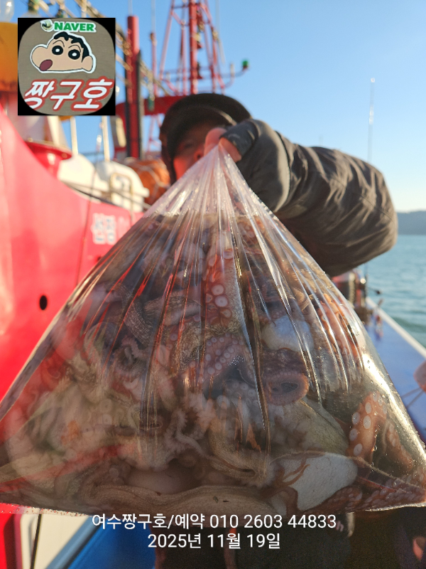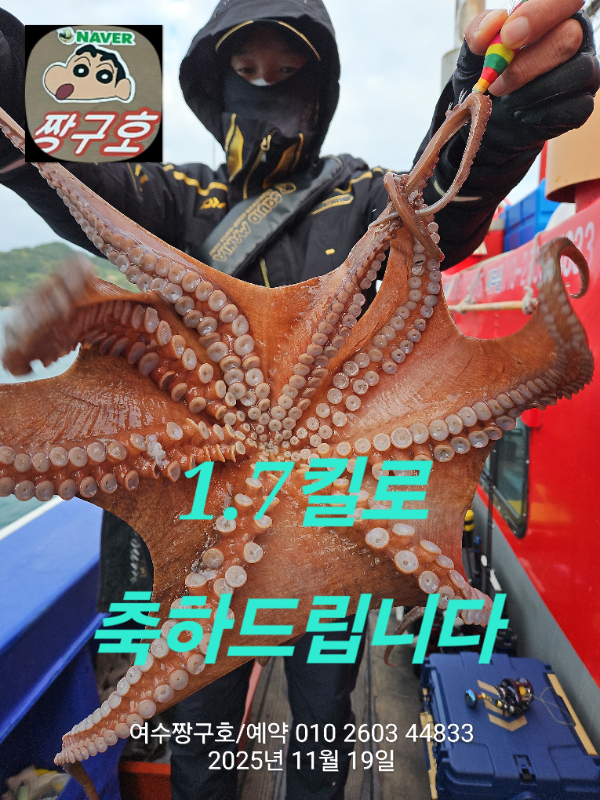 | 제목 : 여수 짱구호 11월19일(수)왕문어 1.7k 1.7k 1.1k 1.1k 1.0k 종일반 조황 (5수) | ||