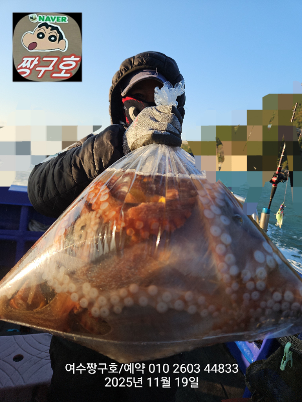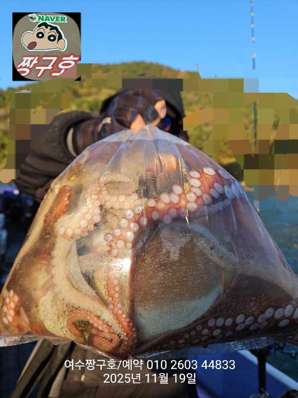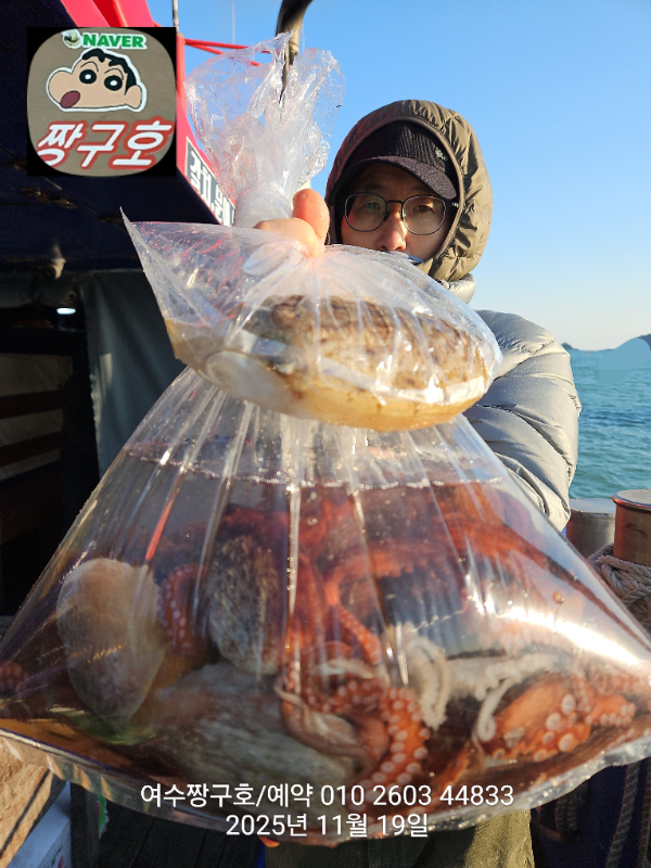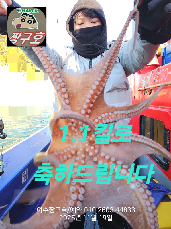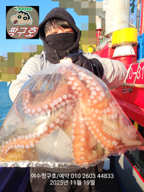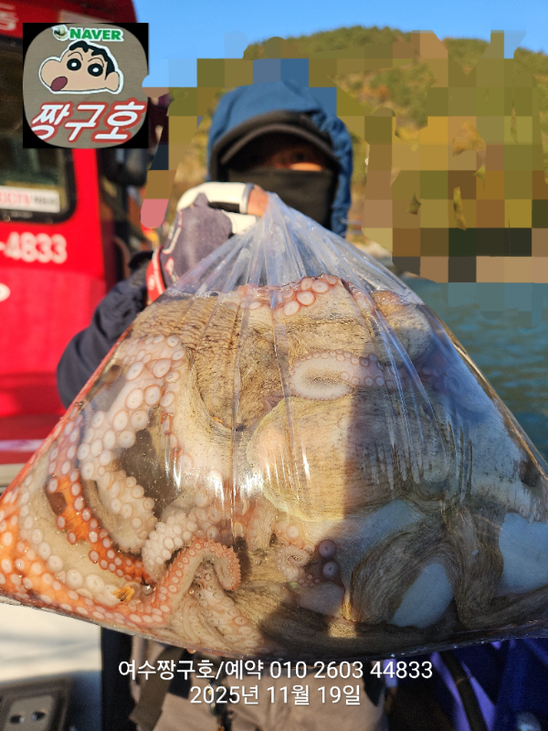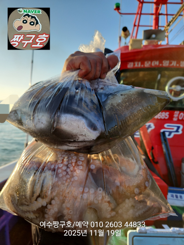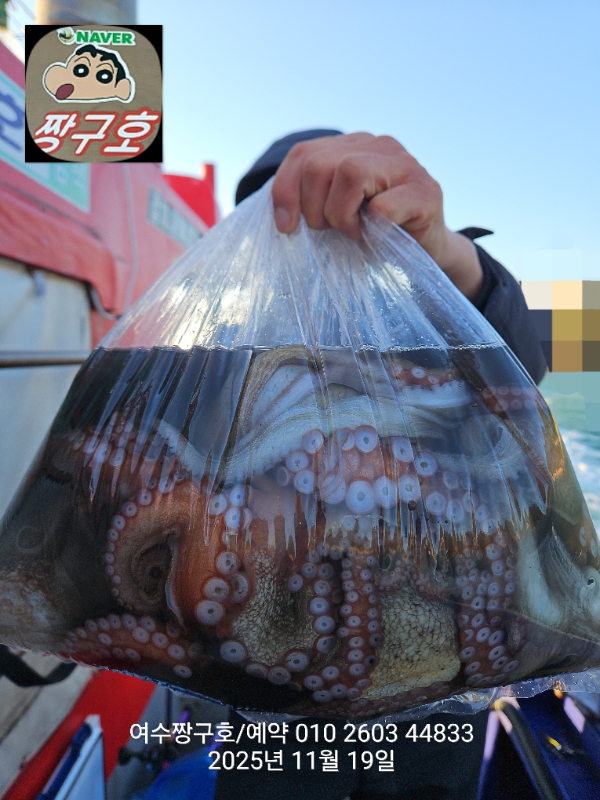 | 제목 : 여수 짱구호 11월19일(수)왕문어 1.7k 1.7k 1.1k 1.1k 1.0k 종일반 조황 (5수) | ||