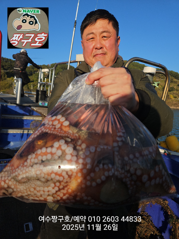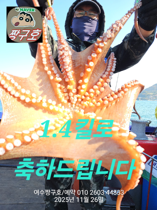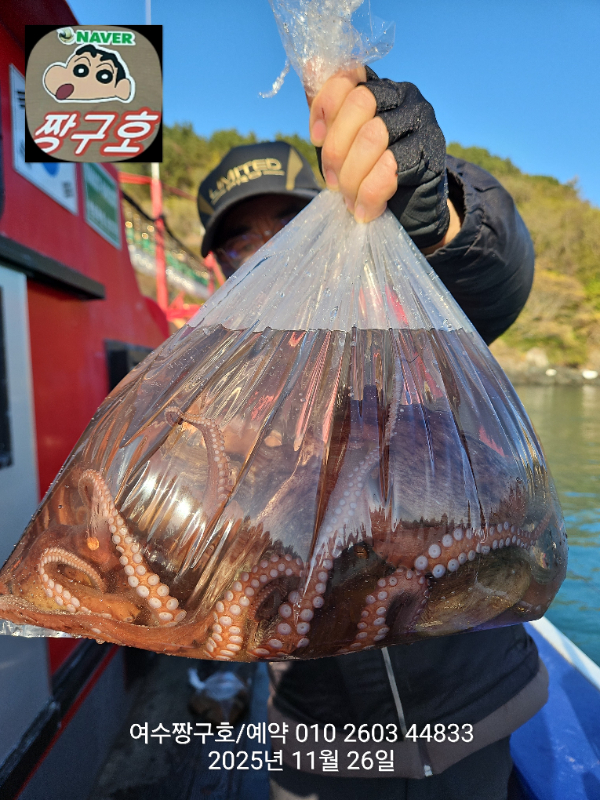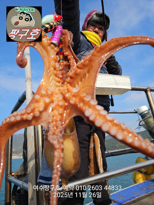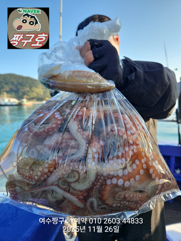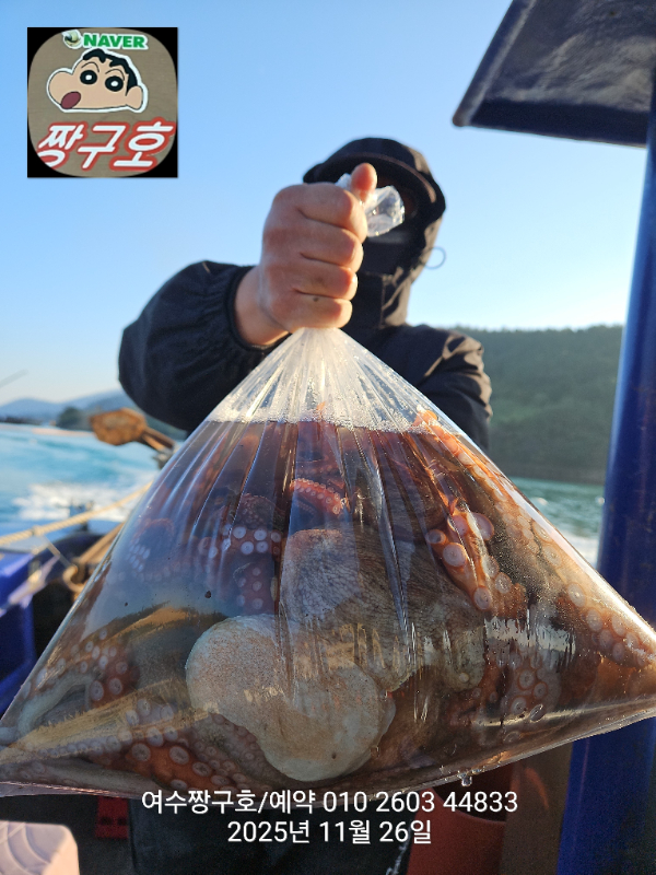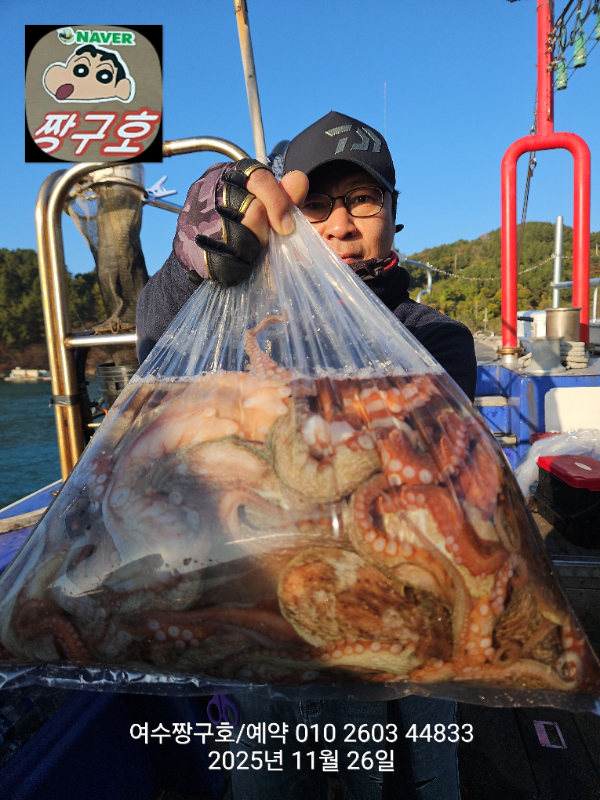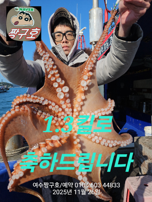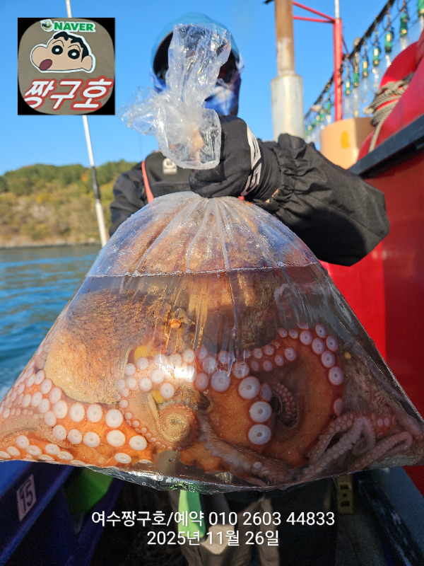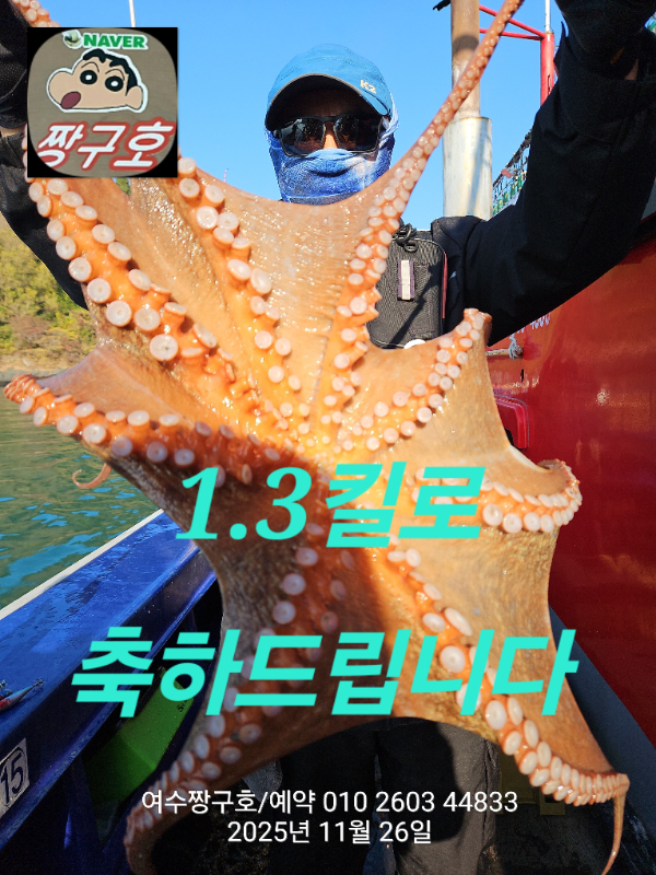 | 제목 : 여수 짱구호 11월26일(수)왕문어 1.4k 1.3k 1.3k 조황(3수) | ||