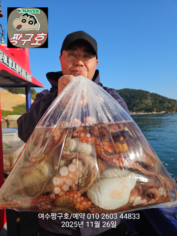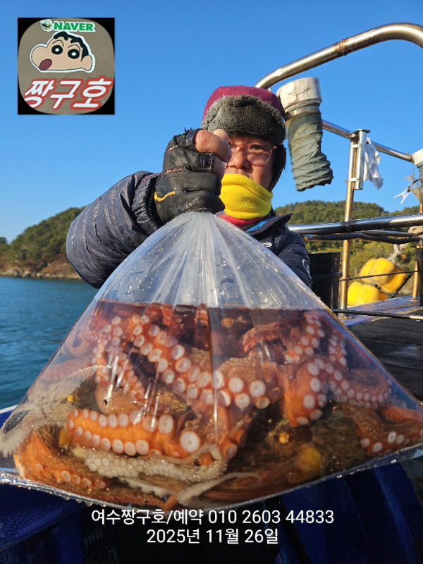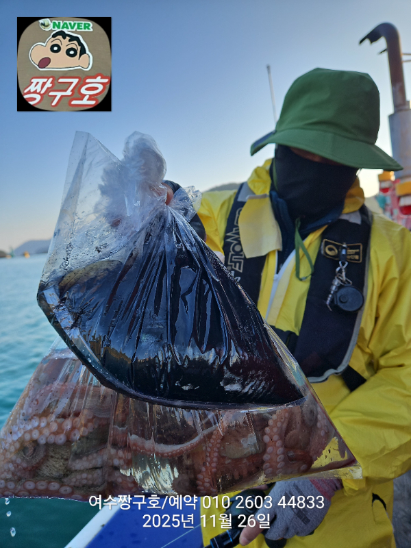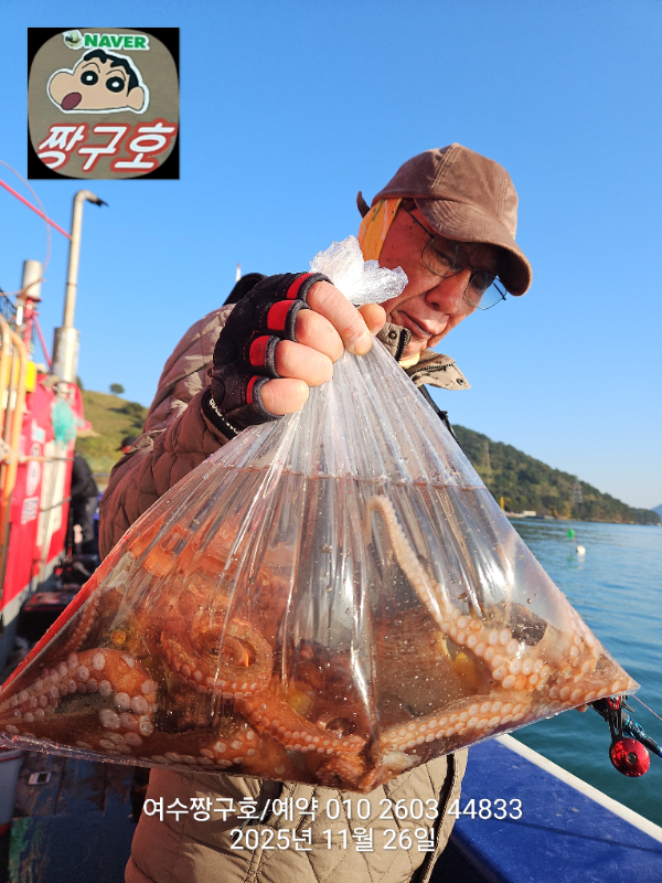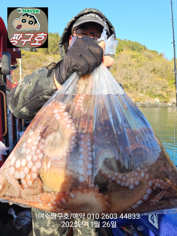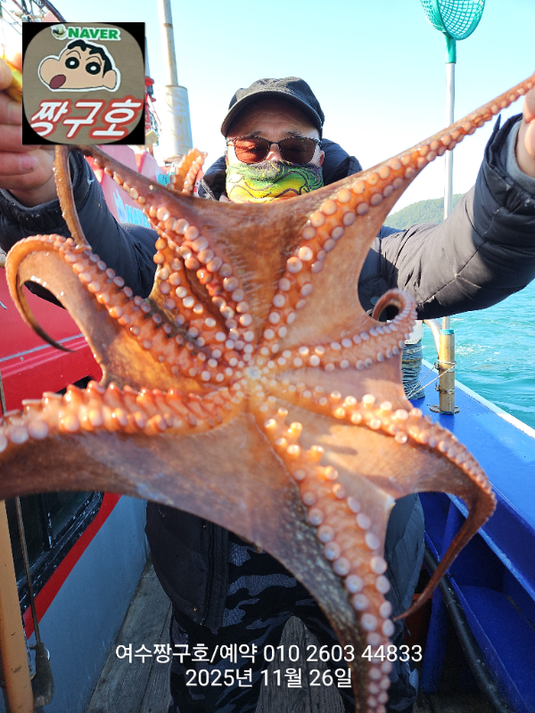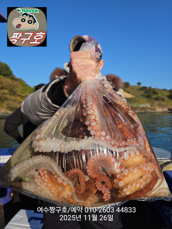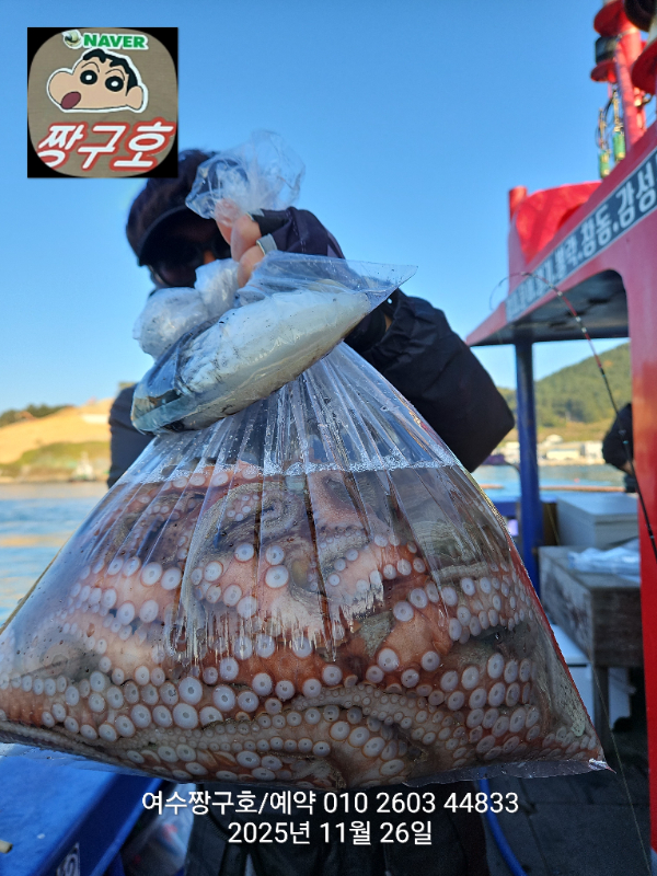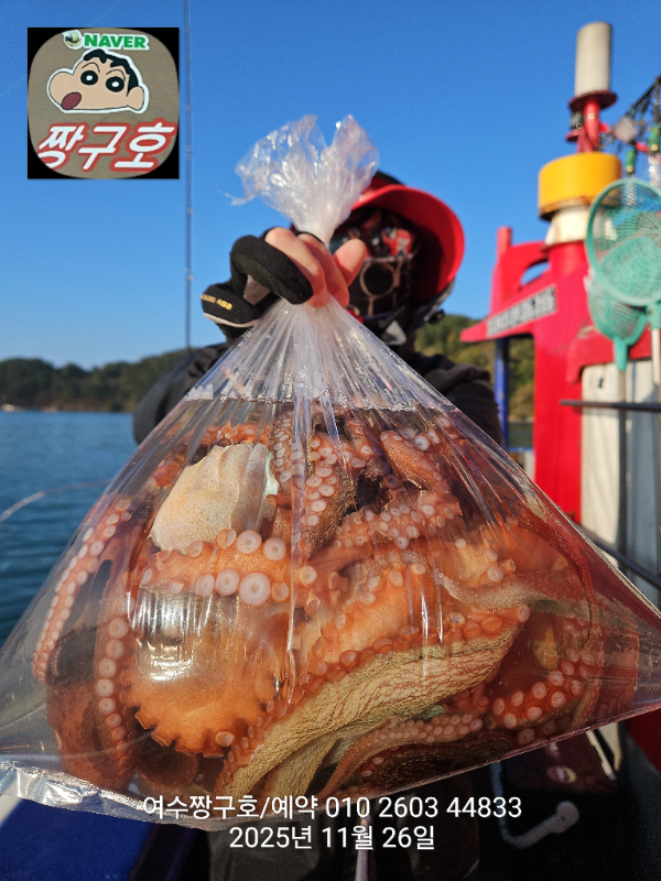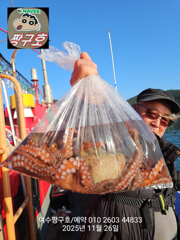 | 제목 : 여수 짱구호 11월26일(수)왕문어 1.4k 1.3k 1.3k 조황(3수) | ||