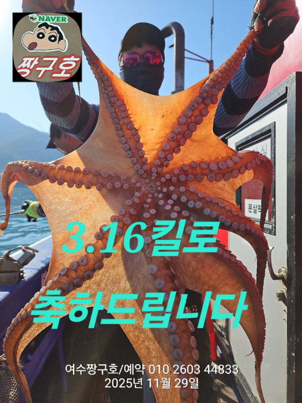 | 제목 : 여수 짱구호 초대박조황(k오바18수) 11월29일(토)왕문어 3.16k 2.95k 2.28k 2.2k 1.8k 1.72k 1.59k 1.5k 1.46k 1.4k | ||