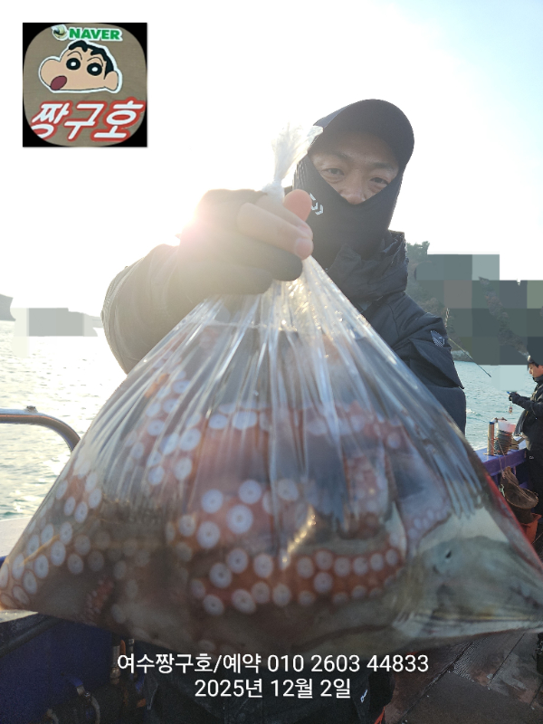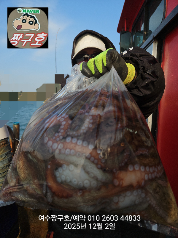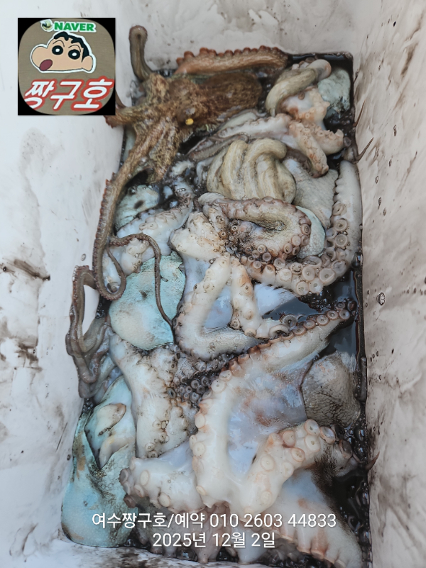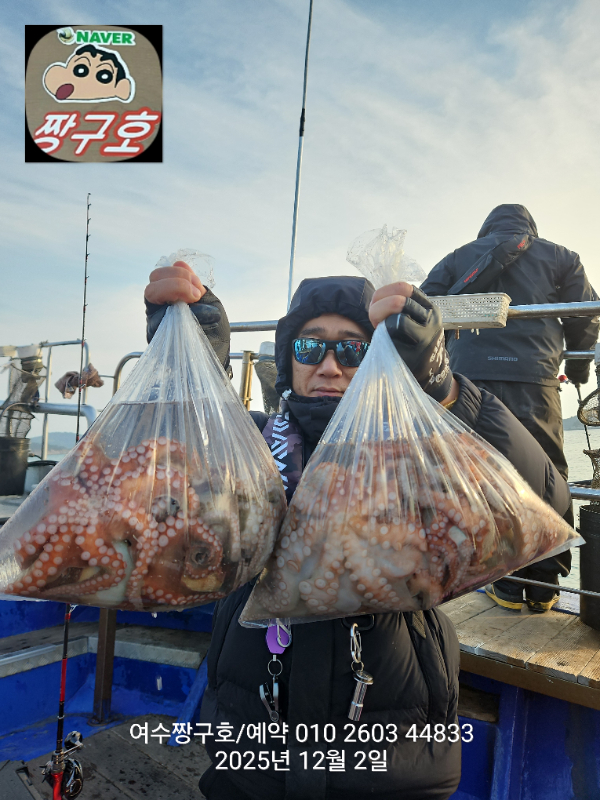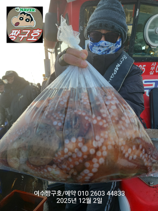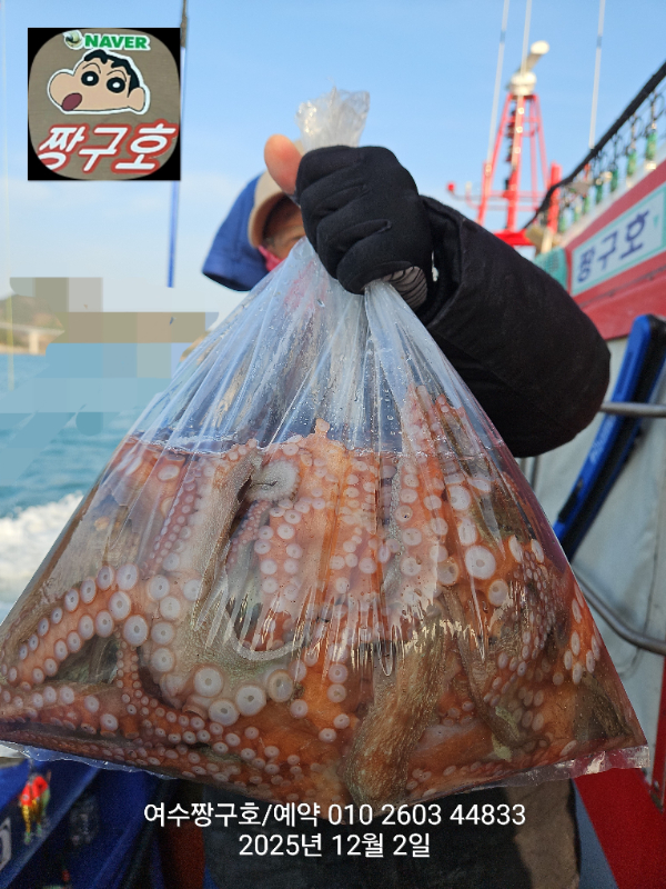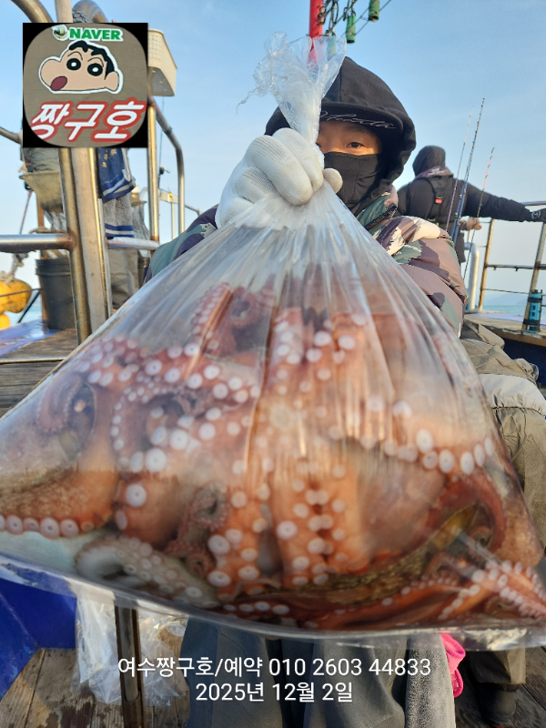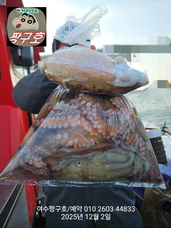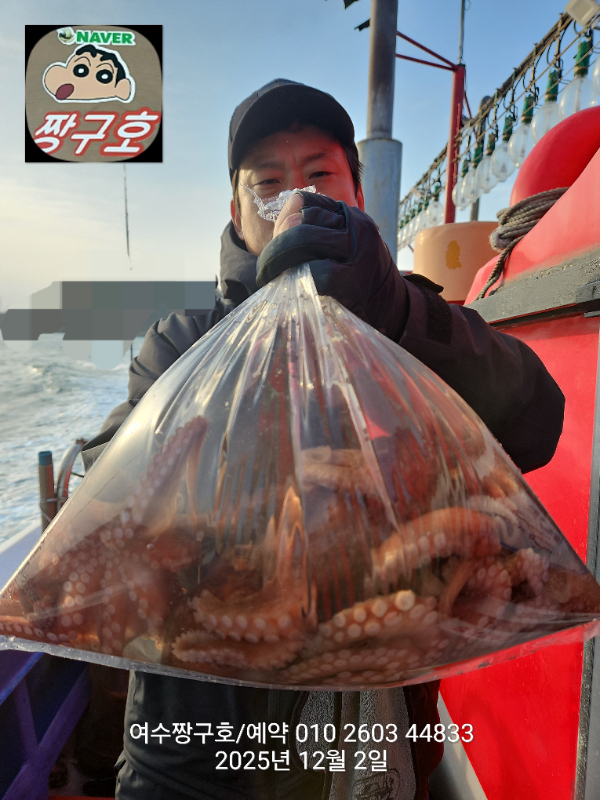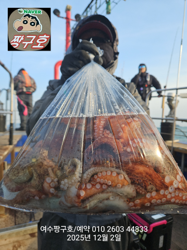 | 제목 : 여수 짱구호 12월2일(화)왕문어 조황 (k오바 7수) | ||