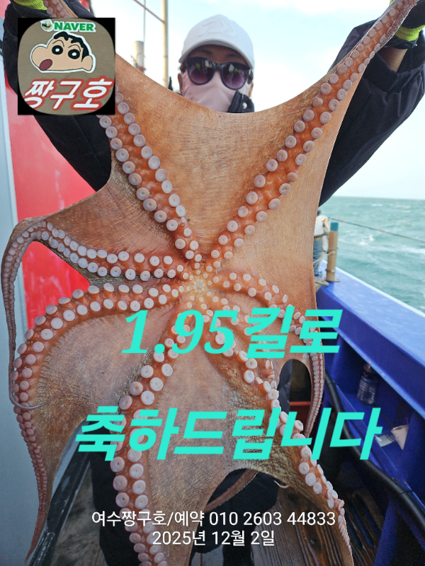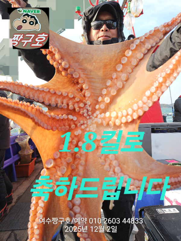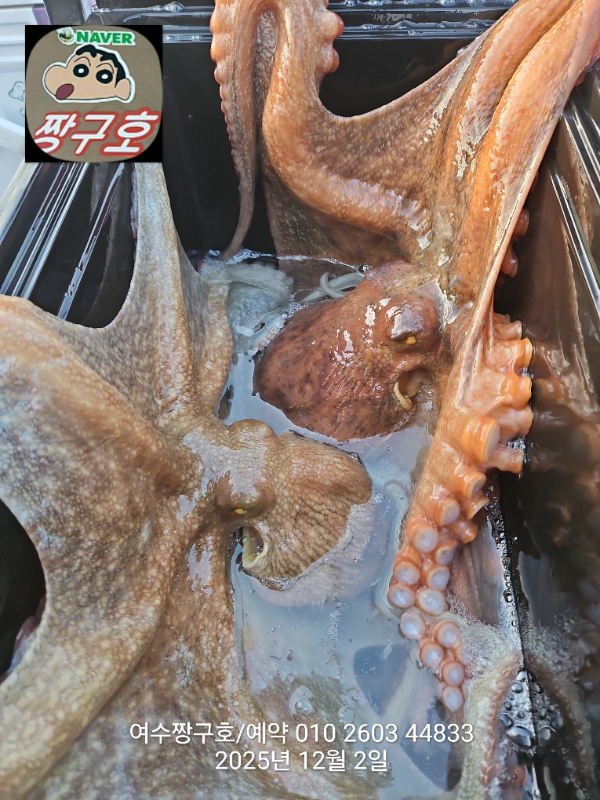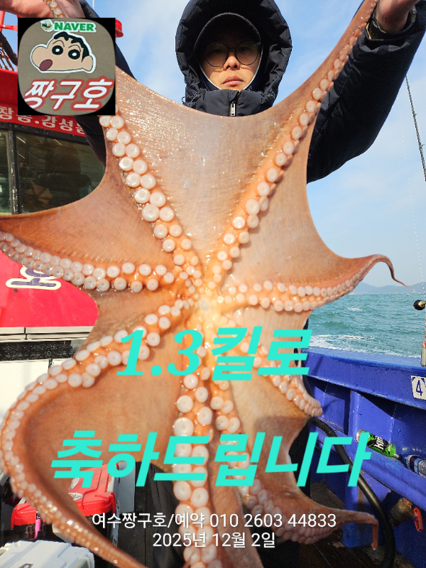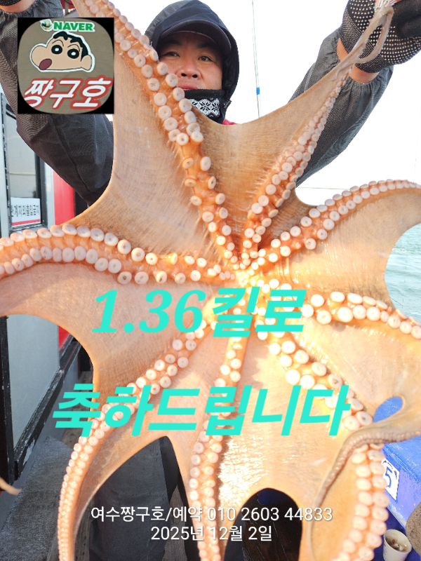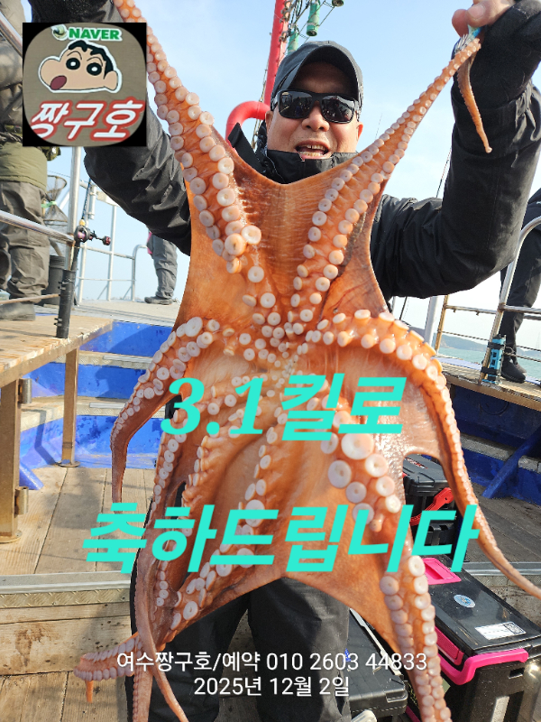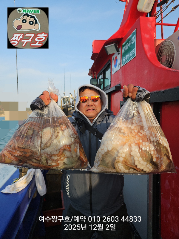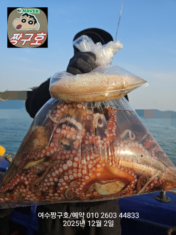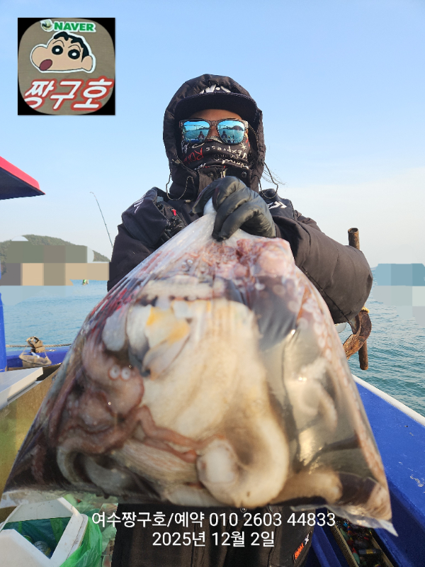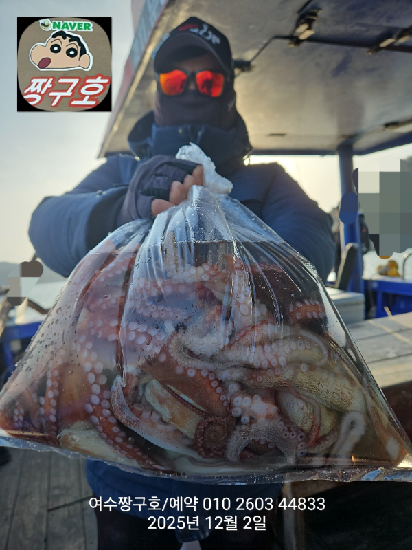 | 제목 : 여수 짱구호 12월2일(화)왕문어 조황 (k오바 7수) | ||