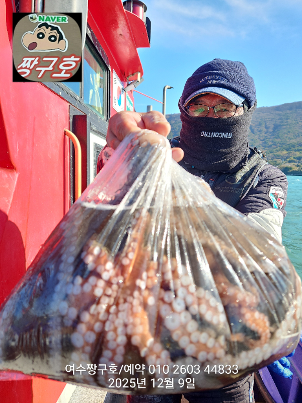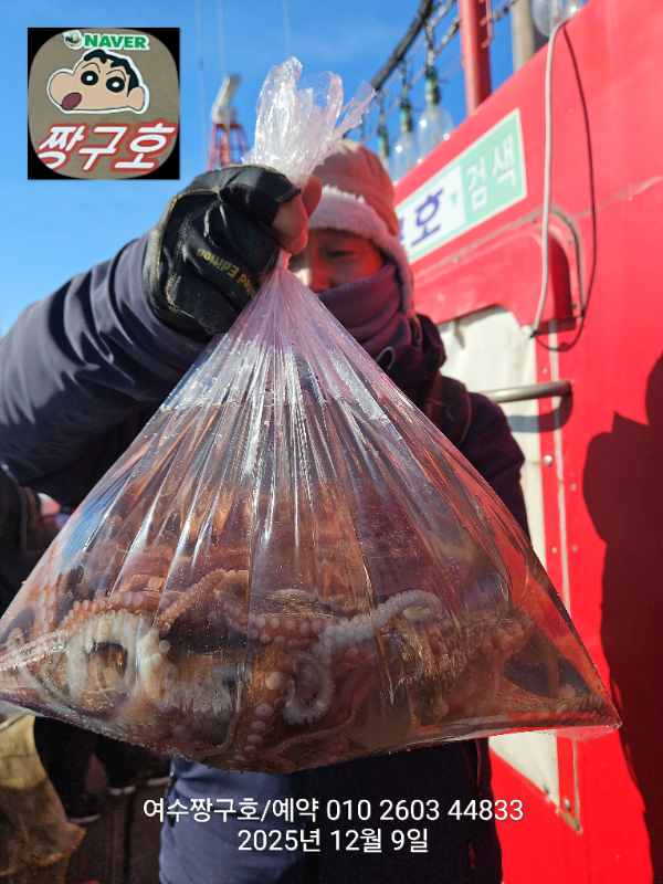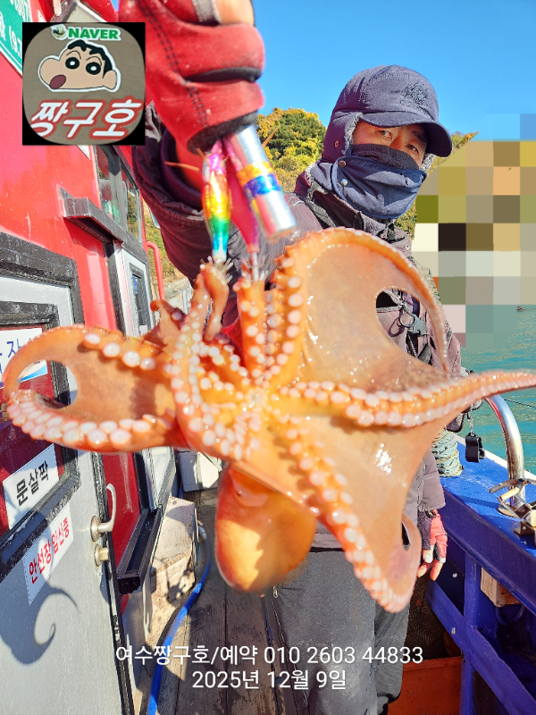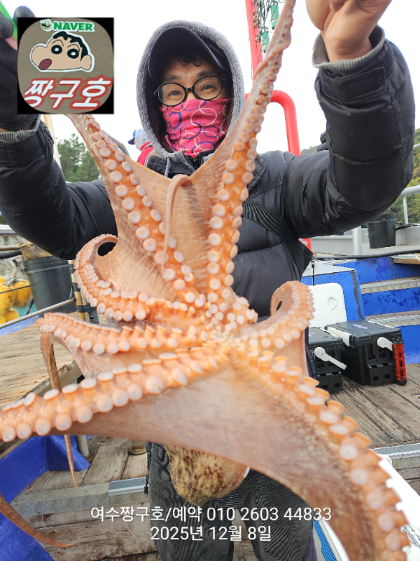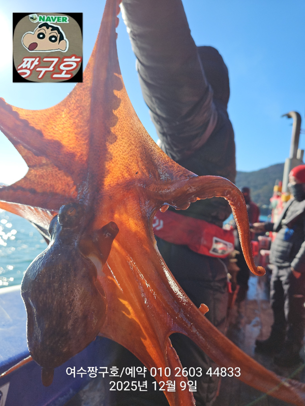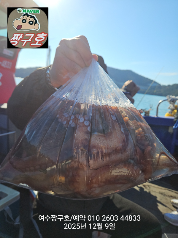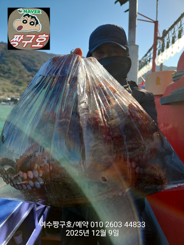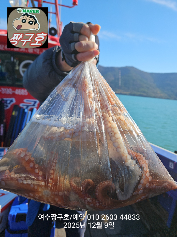 | 제목 : 여수 짱구호 12월8일(월),9일(화)왕문어 조황 2.9k 1.0k (k오바 2수) | ||