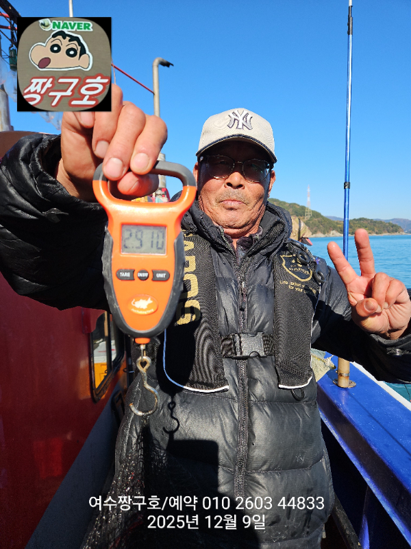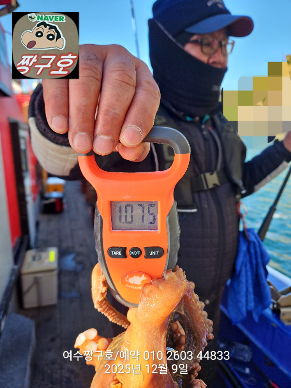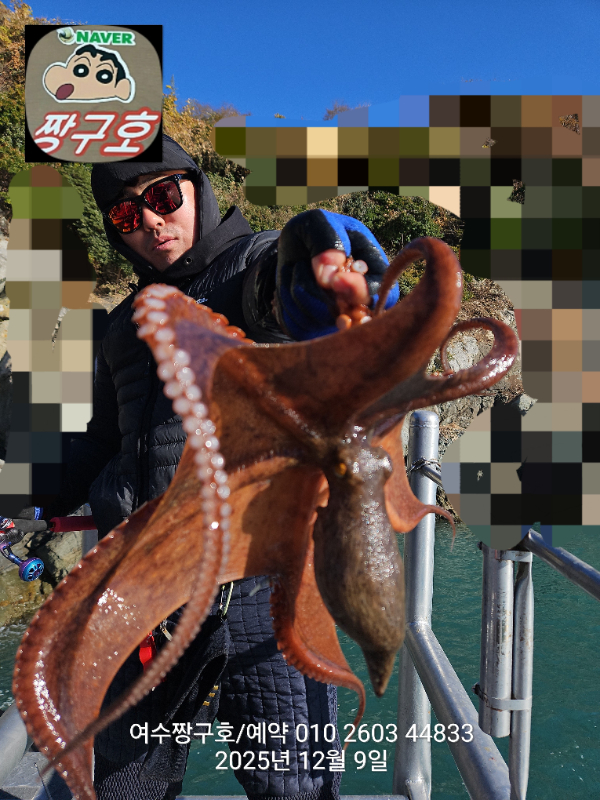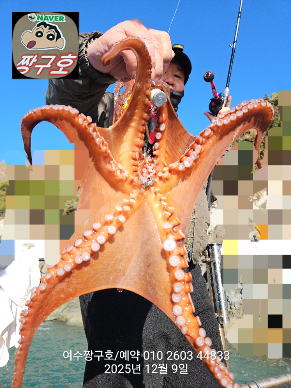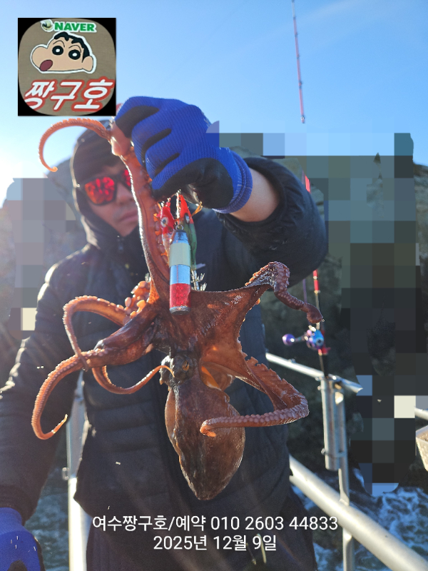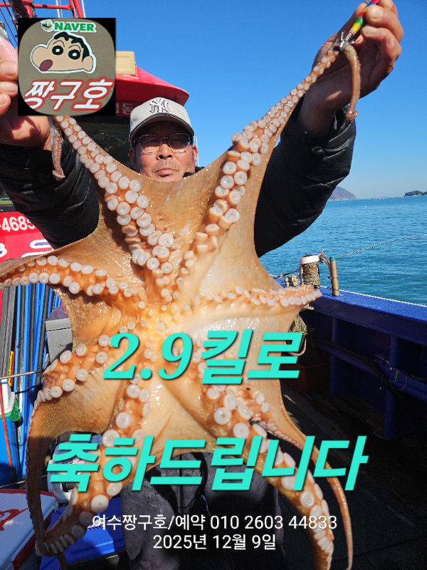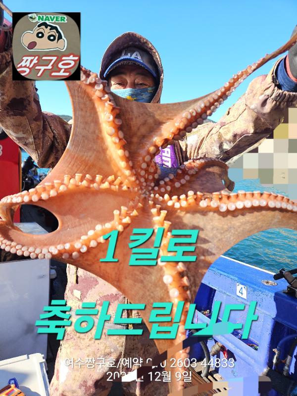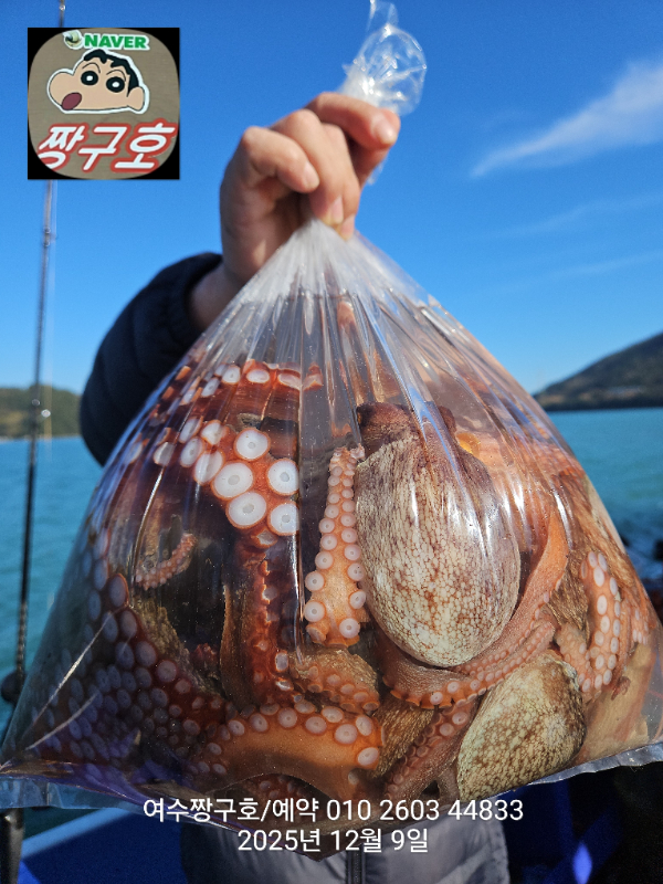 | 제목 : 여수 짱구호 12월8일(월),9일(화)왕문어 조황 2.9k 1.0k (k오바 2수) | ||