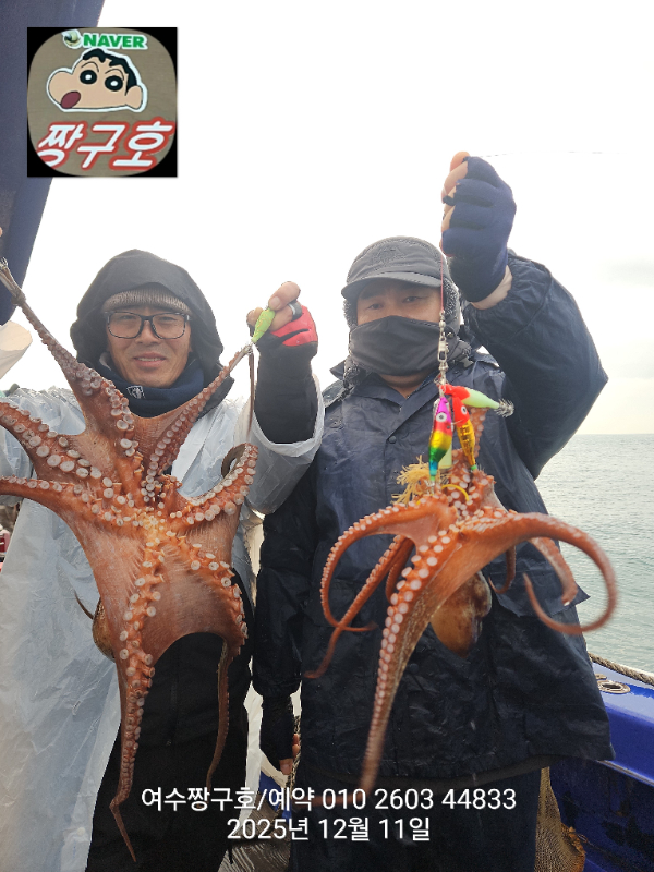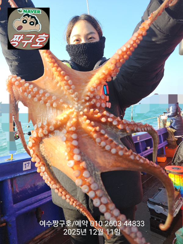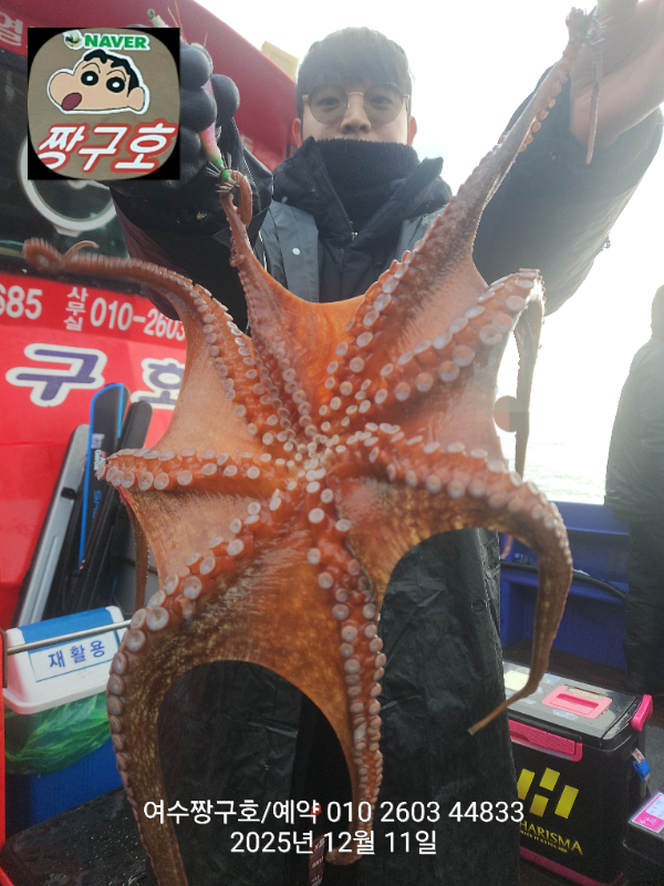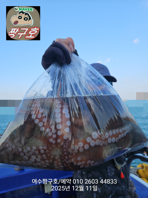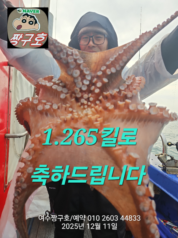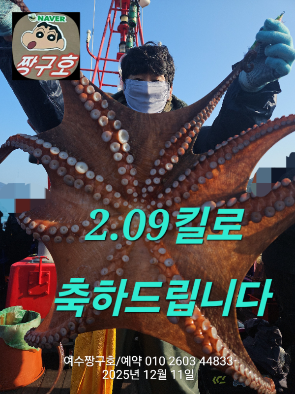 | 제목 : 여수 짱구호 12월11일(목) 왕문어 2.09k 1.47k 1.26k (3수)조황 | ||