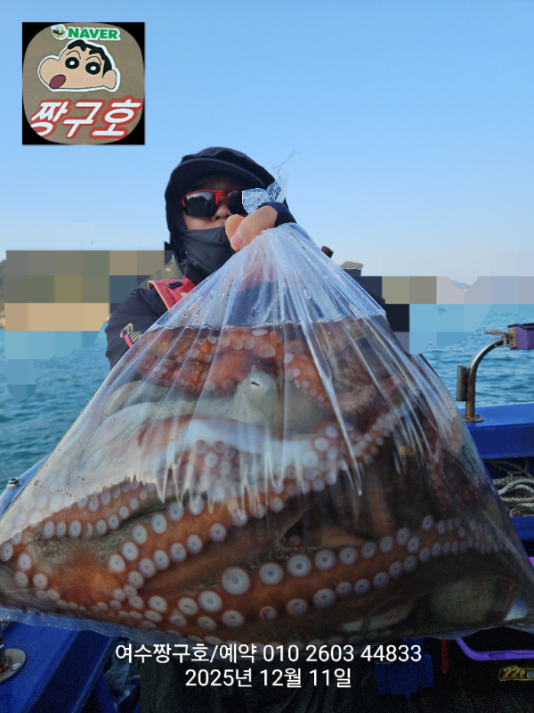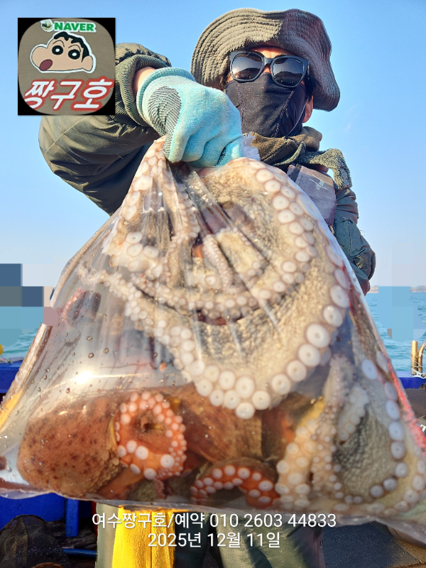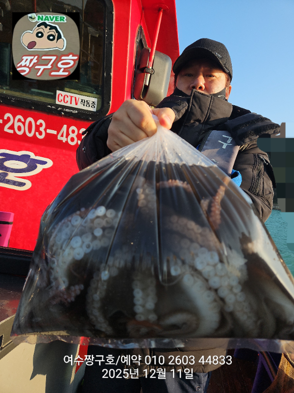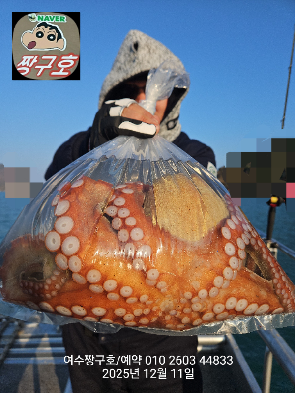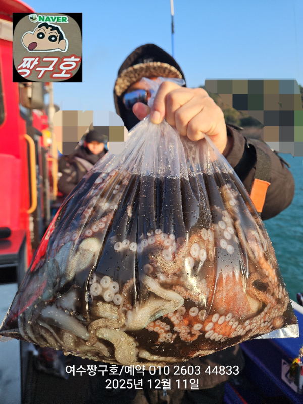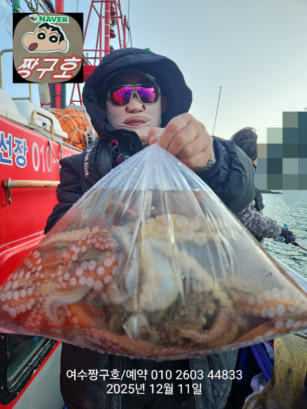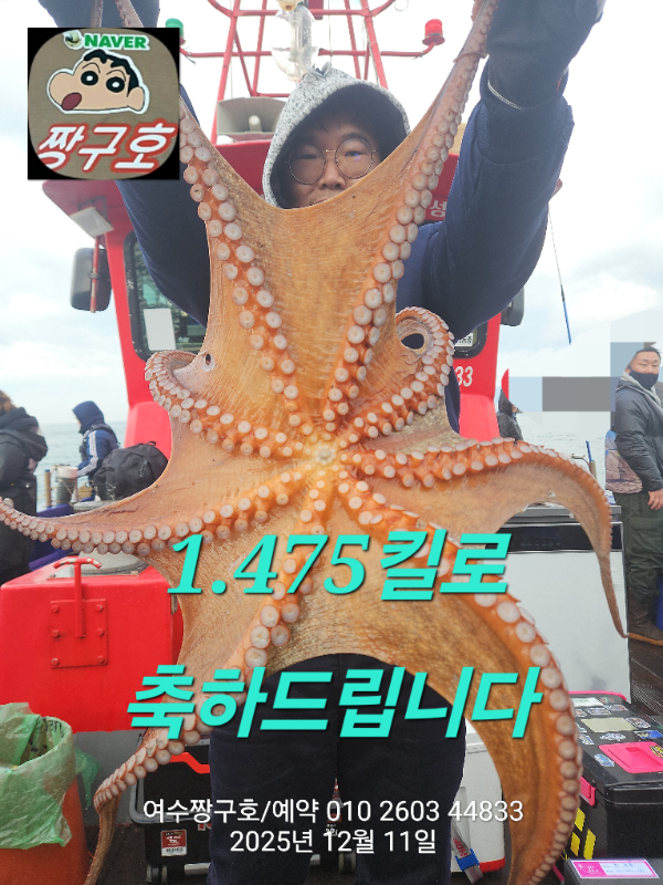 | 제목 : 여수 짱구호 12월11일(목) 왕문어 2.09k 1.47k 1.26k (3수)조황 | ||