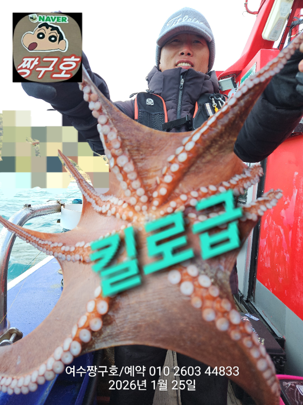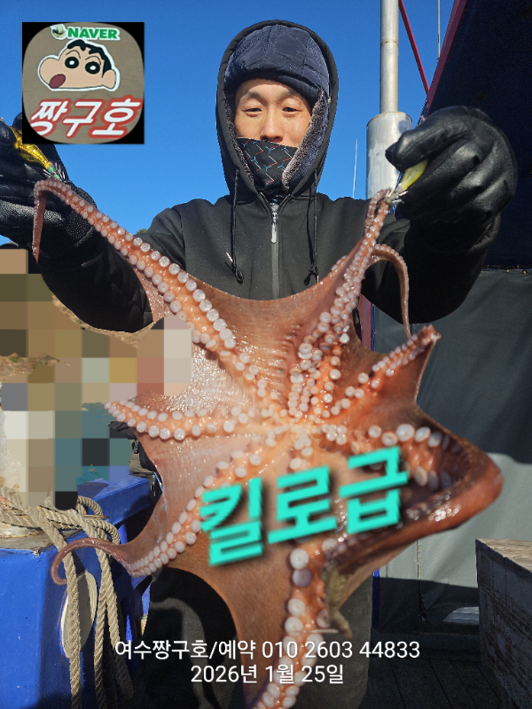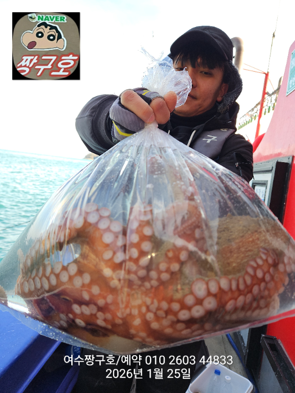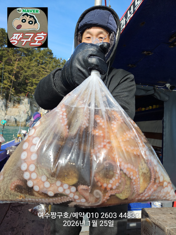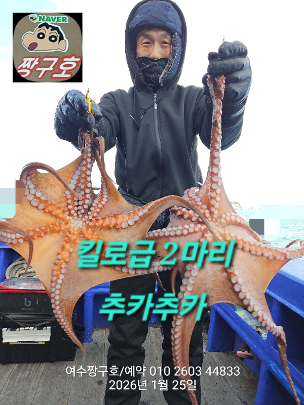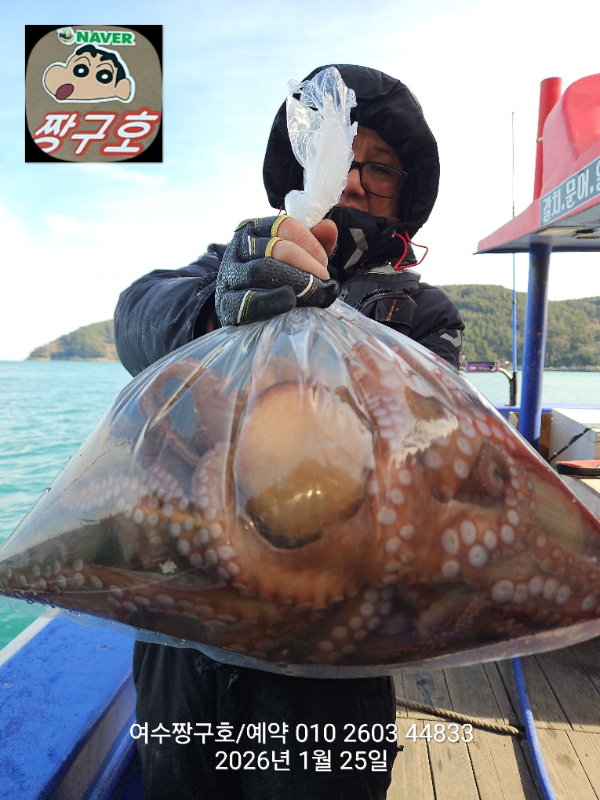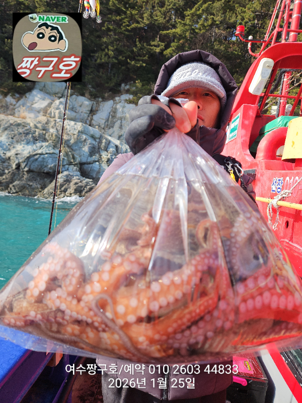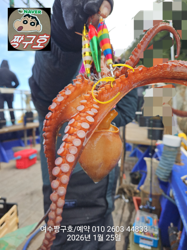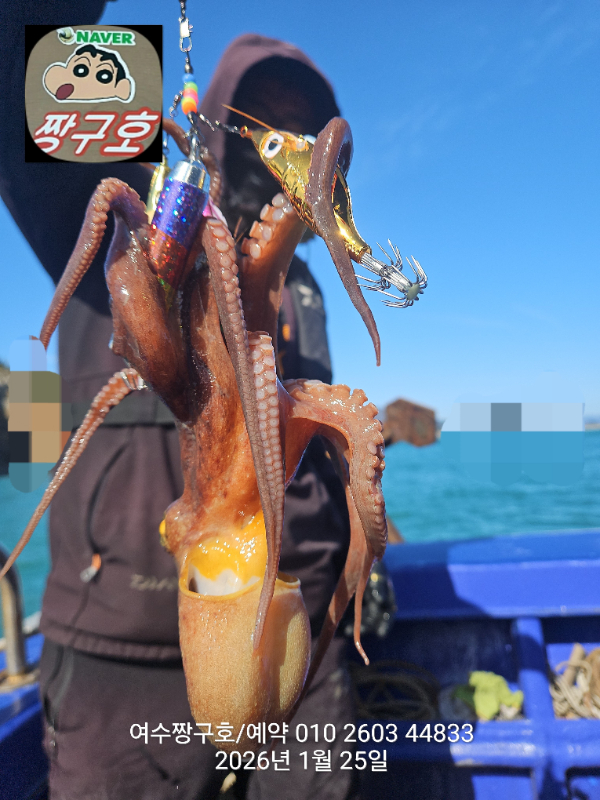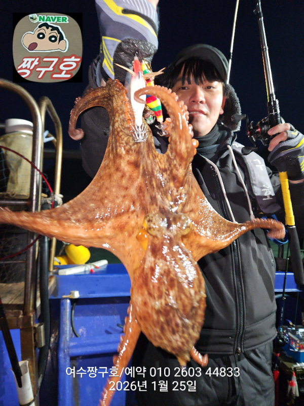 | 제목 : 여수 짱구호 25일(일)왕문어 조황 | ||