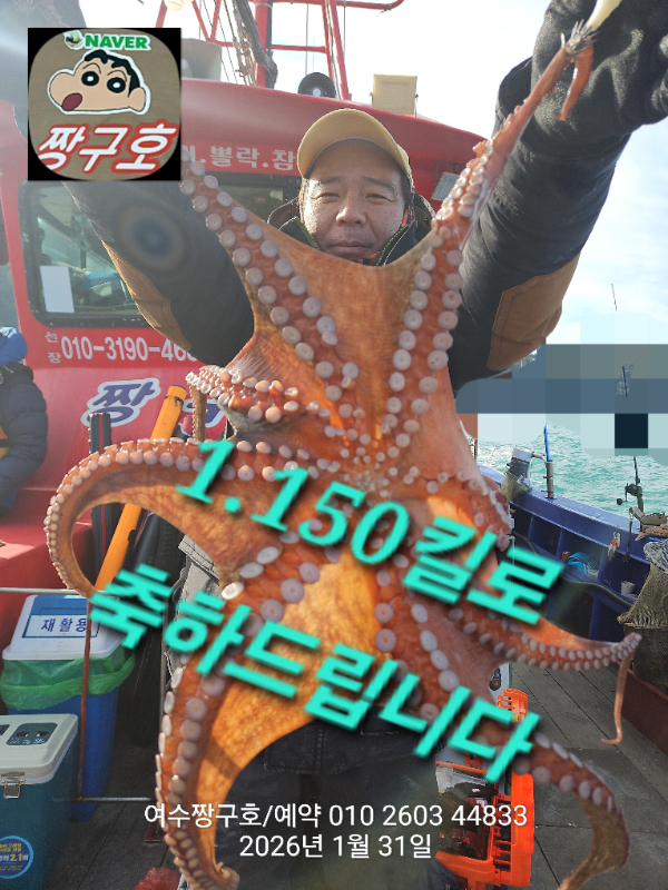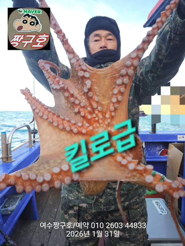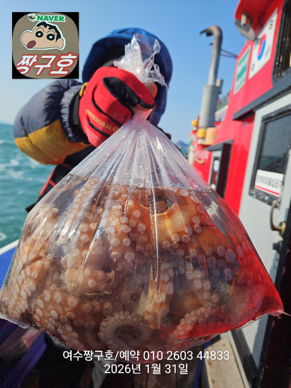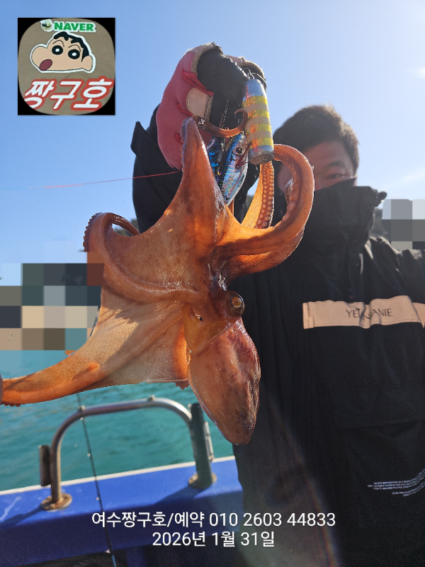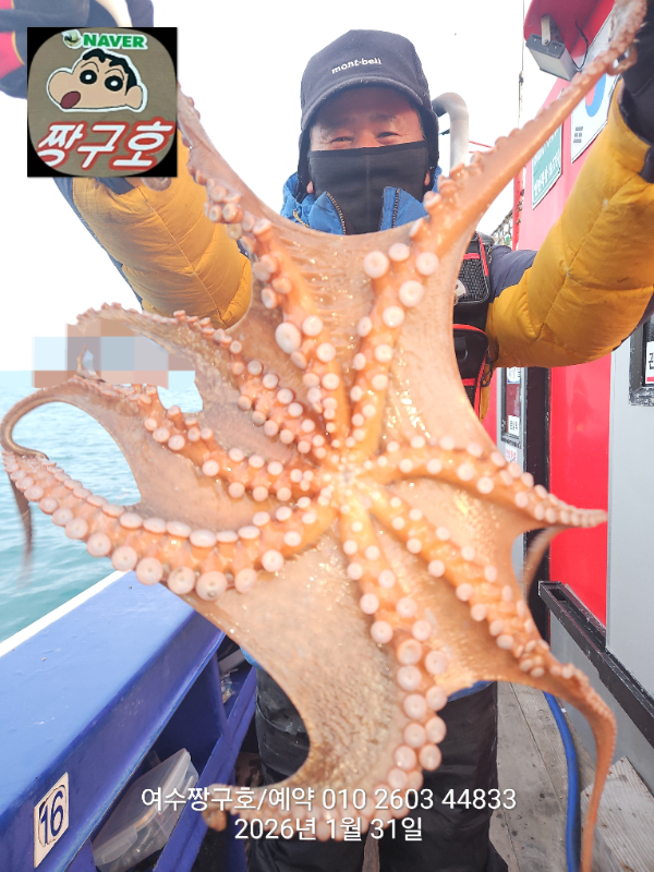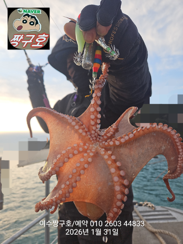 | 제목 : 여수 짱구호 31일(토) 1.15k 왕문어 조황 | ||