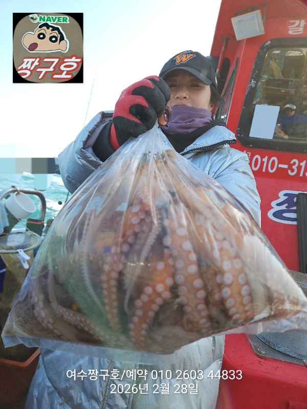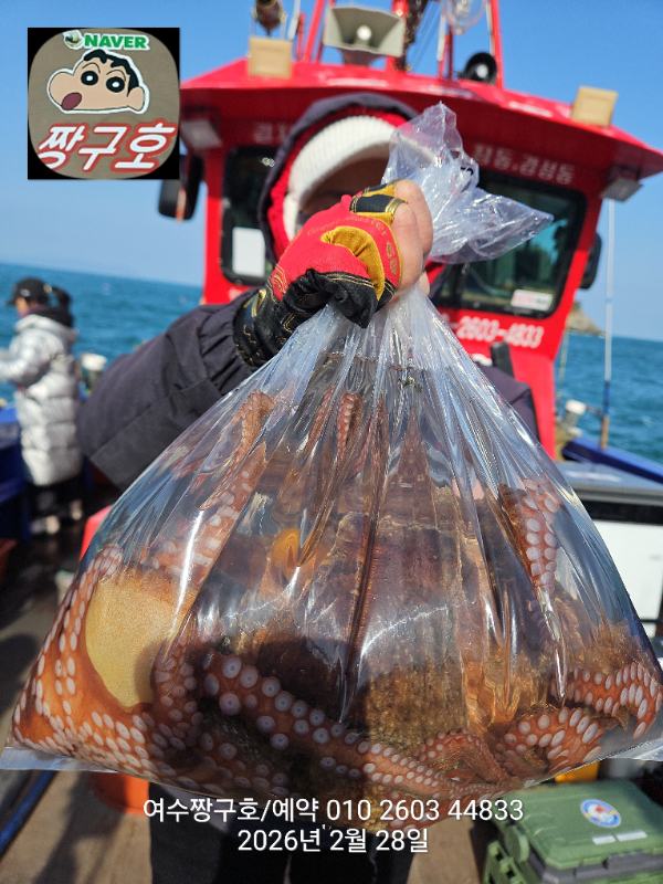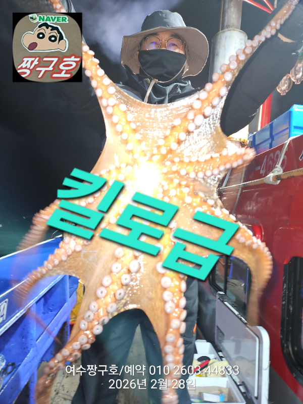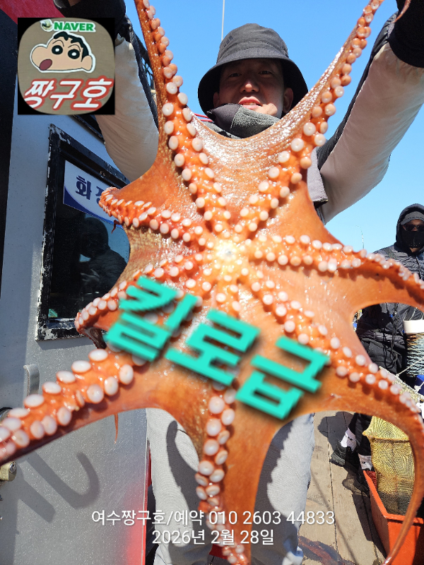 | 제목 : 여수 짱구호 28일(토),1일(일) 1.0K 왕문어 조황 | ||