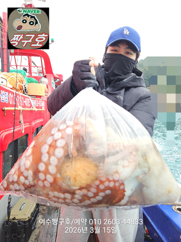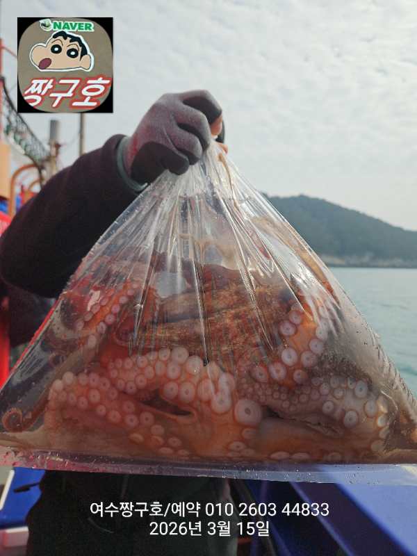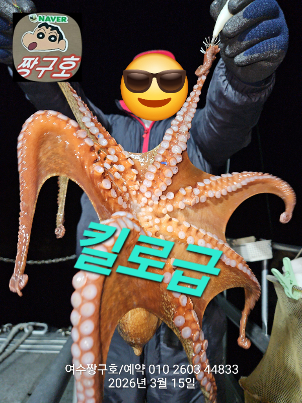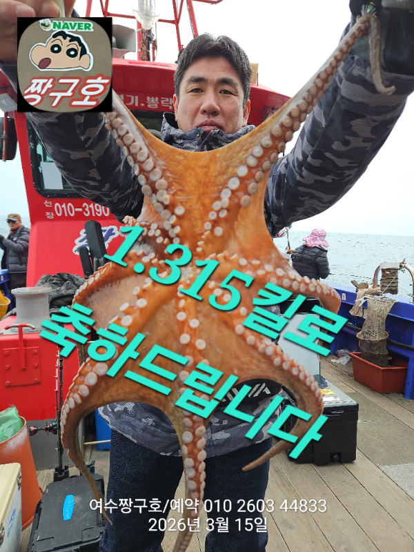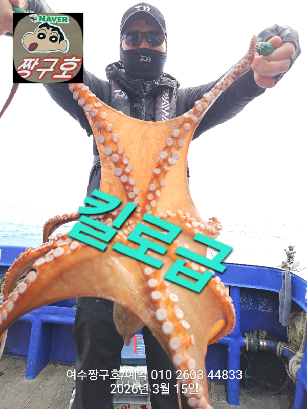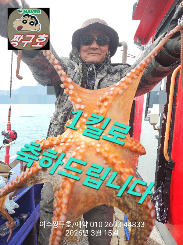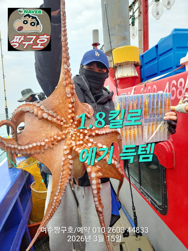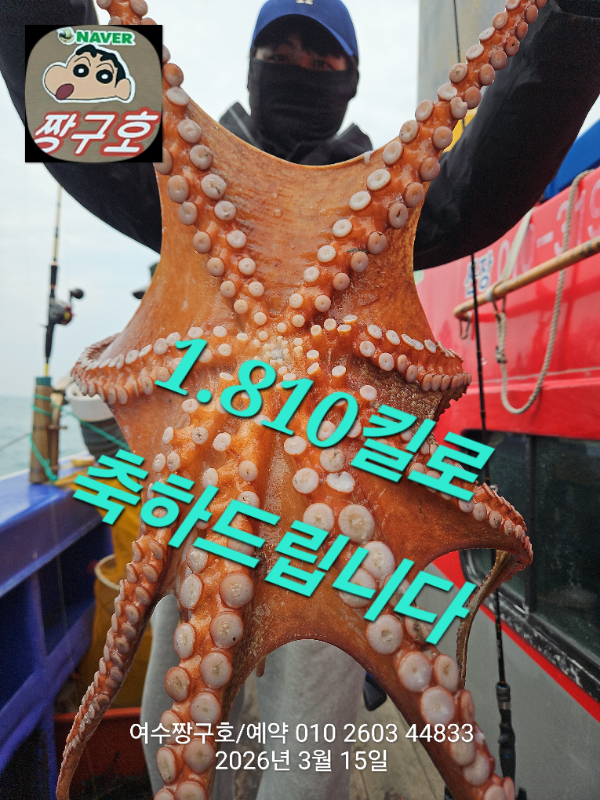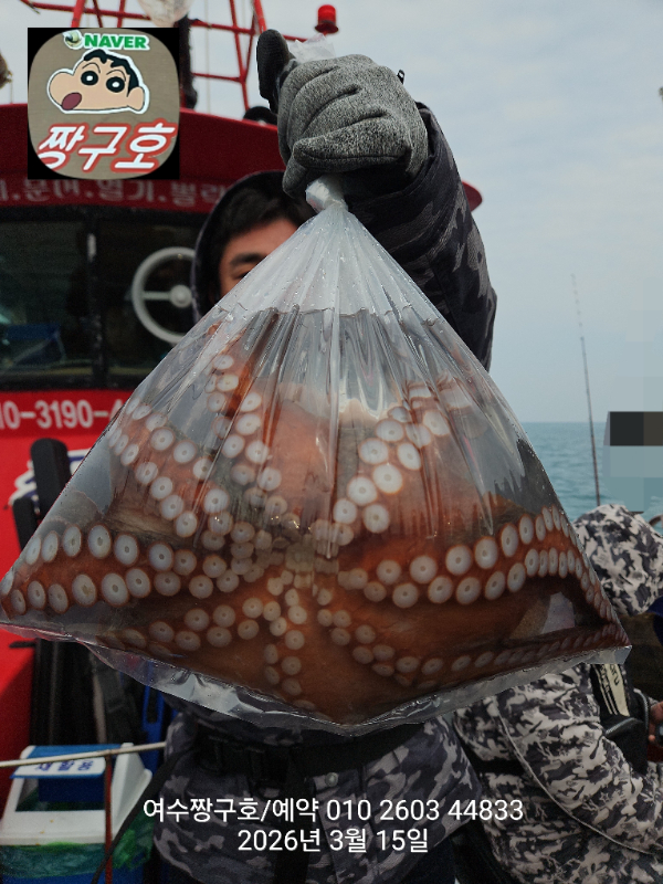 | 제목 : 여수 짱구호 15일(일)2.1k,1.8k,1.31k,1.3k,1.0k 문어 대박 조황(선비이벤트중) | ||