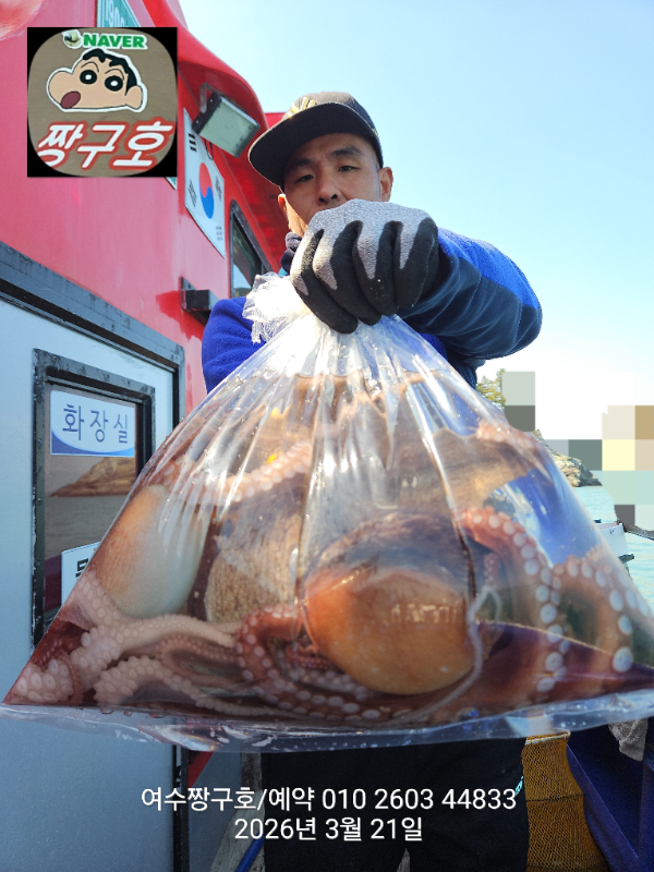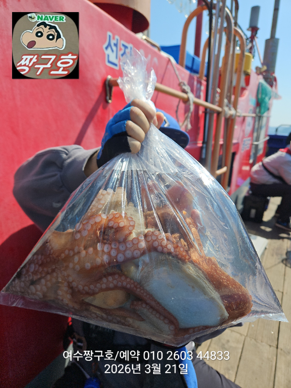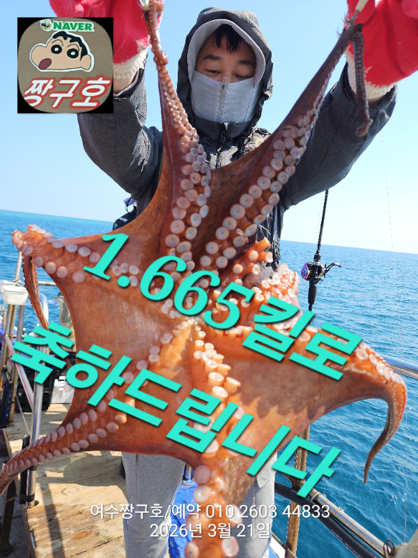 | 제목 : 여수 짱구호 21일(토)1.66k 문어 조황 (선비이벤트중) | ||