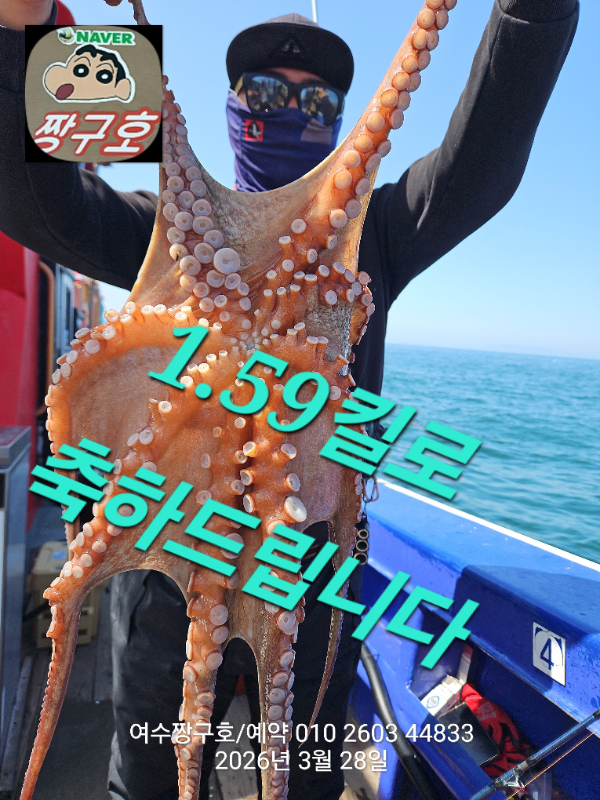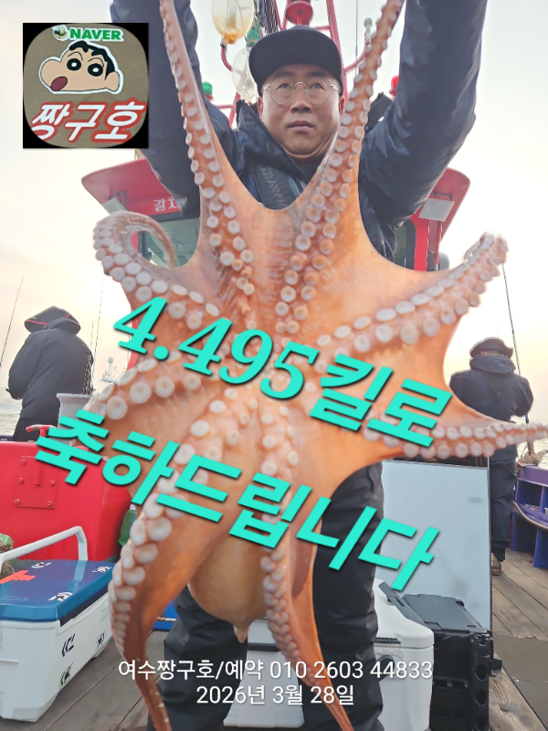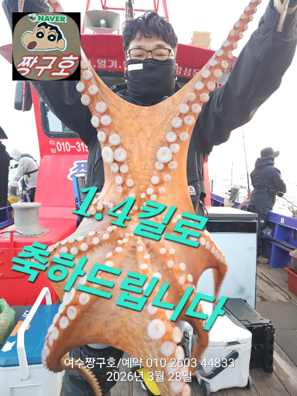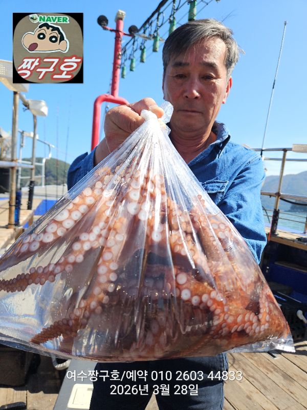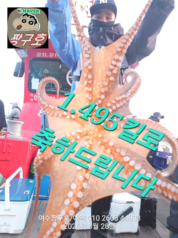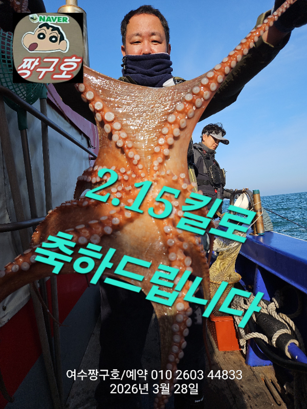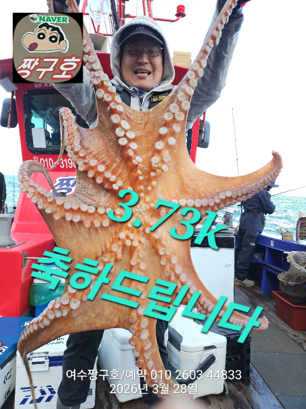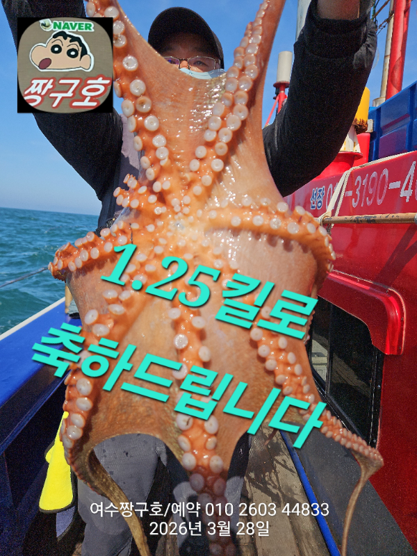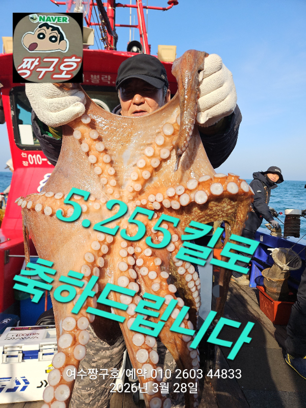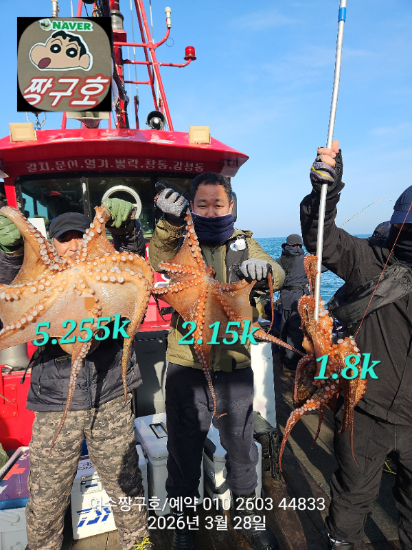 | 제목 : 여수 짱구호 28일(토) 5.25k 4.49k 3.73k 2.15k 1.8k 1.59k 1.49k 1.4k 1.25k (총9수) 왕문어 초초초 대박 조황(선비이벤트중) | ||