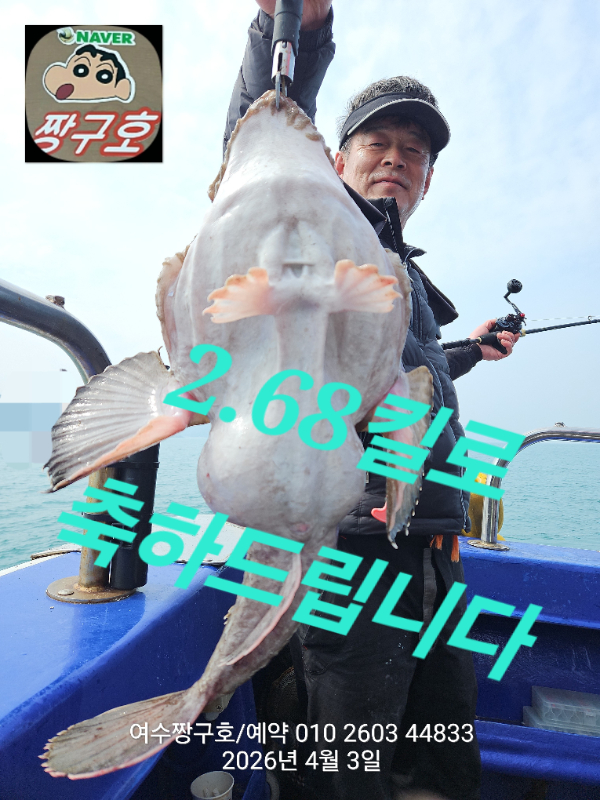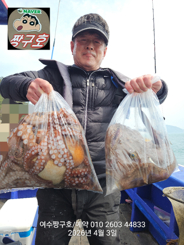 | 제목 : 여수 짱구호 3일(금) 3.21k 1.54k 1.22k 1.18k 아귀2.68k 왕문어 대박 조황(선비이벤트중) | ||