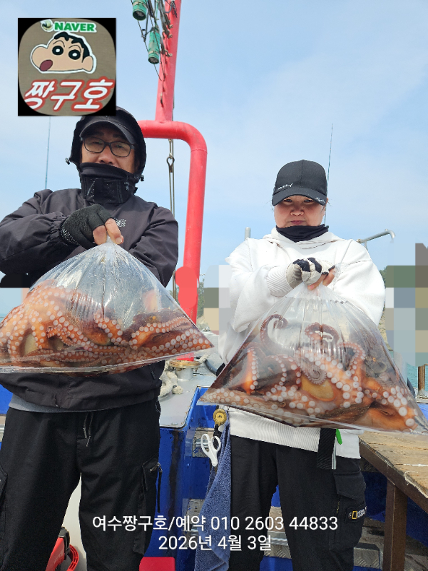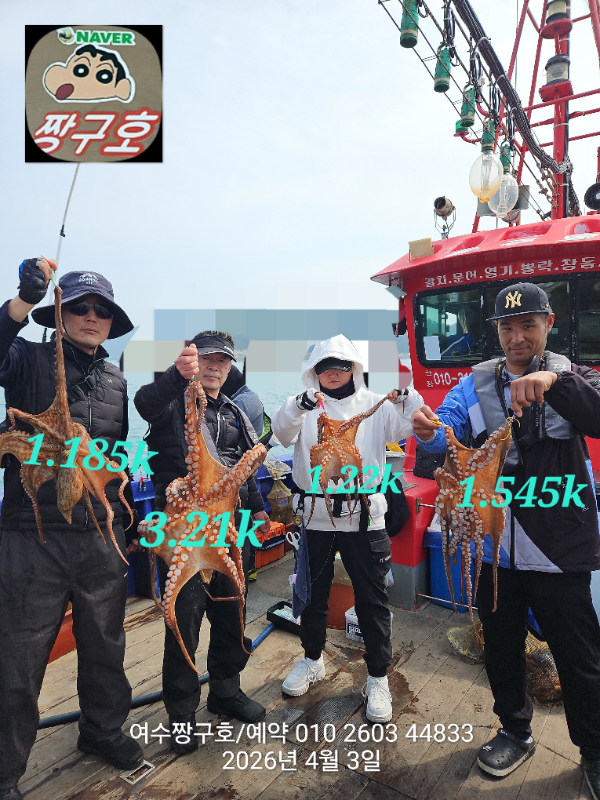 ![]() ![]() ![]() ![]() ![]() ![]() ![]() ![]() ![]() ![]() ![]() ![]() ![]() ![]() ![]() ![]() ![]() ![]() ![]() ![]() #♦️4/14(화)~21(화)갑오징어출조 ㅡ(식사제공)6만원 #여수짱구호(왕문어5.25kg)최고기록#여수짱구호(왕문어4.4kg)기록 여수 짱구호 3일(금) 3.21k 1.54k 1.22k 1.18k 아귀2.68k 왕문어 대박 조황(선비이벤트중) ========================= ⭐️문어⭐️(전투낚시) ㅡ4월 선비이벤트 적용 (전투반)11만원>>>> 8만원 (점심제공) 4월까지 전투선비이벤트 종료 되고 5월부터 선비 인상되니 4월에 계획 세워보세요~ ㅡ5월 선비이벤트 종료 (전투반)11만원(점심제공) (종일반)8만원(점심제공) ㆍ3일(금) 총계: 4수 3.21k 1.54k 1.22k 1.18k 아귀2.68k 모레 월요일부터 황금 문어 물때가 시작됩니다~♡ 모레(월)마감임박 예약 콜~♡ 다음주에도 계속해서 이어지는 호조황이 될겁니다 특히(월~금)평일에는 배도 없고 갯바위 찌낚시꾼이 없어서 대박 조건이 더 좋아요~ 망설이지 마시고 미리 예약 걸어주셔야 출조 가능합니다~ 이번주 평일(월.금) 자리여유 평일 조황이 훨씬 좋아요~ 이번주 내내 기상.물때 굿~ ⭐️봄갑오어⭐️(종일낚시) 4/14(화)~21일(화) 봄갑오징어 시작~♡ ㆍ6만원(식사제공) ======================== ????최근 잔여 자리 안내 ♦️4/6(월) 문어(6자리)전투반(8만 ♦️4/7(화) 문어(7자리)전투반(8만 ♦️4/8(수) 문어(8자리)전투반(8만 ♦️4/9(목) 문어(8자리)전투반(8만 ========================= 매일 매일 k왕문어 팡팡~ K인생 문어 도전하세요 ~♡ ????최근(3월) 킬로 오버 조황 ㅡ3월 빈 날짜는 휴항이였습니다~ ㆍ7일(토)1.88k,1.58k,1.48k 아귀3.0k ㆍ8일(일)1.68k ㆍ13일(금)2.87k,2.2k,1.97k ㆍ14일(토)2.0k,1.36k,1.32k,1.26k ㆍ15일(일)2.1k,1.8k,1.3k,1.3k,1.0k ㆍ 21일(토)1.66k ㆍ 22일(일)1.42k 1.12k ㆍ26일(목) 3.6k 2.9k 2.7k 1.2k 1k ㆍ27일(금)4.1k 4.k 2.8k 2.k1.2k1.1k ㆍ28일(토) 5.25k 4.49k 3.73k 2.15k ㅡ1.8k 1.59k 1.49k 1.4k 1.25k ㆍ29일(일)3.58k 1.86k 1.69k ㅡ1.4k 1.3k 1.24k 1.2k 1.18k ㆍ30일(월)2.7k 2.2k 1.1k ㆍ31일(화)2.89k 1.5k ????최근(4월) 킬로 오버 조황 ㆍ1일(수)3.9k 아귀3.2k ㆍ2일(목)1.22k 1.21k 1.1k 아귀1.2k ㆍ3일(금)3.2k 1.54k 1.22k 1.18k 아귀2.68k ☎️사무장 01026034833 ========================== 여수 짱구호 왕문어 다녀왔습니다 전년 대비 올해는 왕문어가 마릿수 제법 나오고 있습니다 ㅡ킬로 오버 조황 2일(목)1.22k 1.21k 1.1k 아귀1.2k 총 4수 나왔습니다 다음주 월~금요일 빨리 예약주세요~ 월~금 최고의 물때이니 문어 잡으러 출동 계획 잡아보세요 이번주 6일(월)~10일(금)까지 날씨 좋고 물때 좋아서 굿조황 예상되니 미리 예약 부탁드림니다~♡ 고유가 시대의 흐름에 맞춰서 차량 기름값을 조금이라도 아끼시라고 왕문어 선비할인 이벤트있습니다. ※참조 저희 선사에서도 기름값 인상으로 소수 인원 출항이 제한되어 10인미만 경우 출조를 삼가하겠습니다 ※참조 선비 할인과 기름값 인상으로 소수인원 출항이 어렵습니다 그러므로 출조계획시 미리 예약부탁드림니다 ※참조 선비 환불은 하루전 취소 빼고는 모두 환불해드리니 걱정마시고 미리 예약주세요 ????선비할인 이벤트 ㆍ전투낚시 10만원>>> 8만원(식사ㅇ) ========================== ◾️준비물 ◾️문어 봉돌: 30호.40호.50호 ㆍ아이스박스, 얼음 pt 2개 ◾️시간 > 4월 문어 04시00분~15시30분(전투반)8만원 (항도착 기준) >4월 갑오징어 05시00분~14시00분(종일반)6만원 (식사제공) ※물때와 기상에 따라 출조시간이 변경될수도 있으니 사무장님께서 전날 문자 보내드리니 확인하시고 출발하세요 ◾️아침 떡국 제공 (도시락 제공) 핫바. 과자. 컵라면. 음료수 등 있습니다 ※구명조끼 무상임대 ※초보조사님 선장 1:1코칭 ※휴게실 운영 ◾️입금하실곳 은 행 명 :우체국 계좌번호:900621-02-107643 예 금 주:안 영 현 =========================== ⭐ 여수 짱구호 2026년 04월 예약 ⭐ 문어 전투반 04:00~15:30(항도착기준) 갑오징어 05시00분~14시00분 ♦️4/4(토) 악기상휴항 ♦️4/5(일) 문어(완료)전투반(8만 ♦️4/6(월) 문어(6자리)전투반(8만 ♦️4/7(화) 문어(7자리)전투반(8만 ♦️4/8(수) 문어(8자리)전투반(8만 ♦️4/9(목) 문어(8자리)전투반(8만 ♦️4/10(금) 문어(13자리)전투반(8만 ♦️4/11(토) 문어(완료)전투반(8만 ♦️4/12(일) 문어(완료)전투반(8만 ♦️4/13(월) 문어(19자리)전투반(8만 ♦️4/14(화) 갑(예약중)6만(식사제공) ♦️4/15(수) 갑(예약중)6만(식사제공) ♦️4/16(목) 갑(예약중)6만(식사제공) ♦️4/17(금) 갑(예약중)6만(식사제공) ♦️4/18(토) 갑(17자리)6만(식사제공) ♦️4/19(일) 갑(17자리)6만(식사제공) ♦️4/20(월) 갑(예약중)6만(식사제공) ♦️4/21(화) 갑(예약중)6만(식사제공) ♦️4/22(수) 문어(예약중)전투반(8만 ♦️4/23(목) 문어(예약중)전투반(8만 ♦️4/24(금) 문어(예약중)전투반(8만 ♦️4/25(토) 문어(예약중)전투반(8만 ♦️4/26(일) 문어(예약중)전투반(8만 ♦️4/27(월) 문어(예약중)전투반(8만 ♦️4/28(화) 문어(예약중)전투반(8만 ♦️4/29(수) 문어(예약중)전투반(8만 ♦️4/30(목) 문어(예약중)전투반(8만 =========================== #여수짱구호조황 #여수낚시배#여수생활낚시배 ##돌문어.갑오징어.쭈꾸미.낙지 #여수문어낚시#여수갑오징어낚시 ##여수쭈꾸미낚시 #열기.뽈락.쏨뱅이낚시 #민어.붉바리.참돔.갈치.백조기 #짱구밴드초대장 ➡️ 짱구호 배 찾
